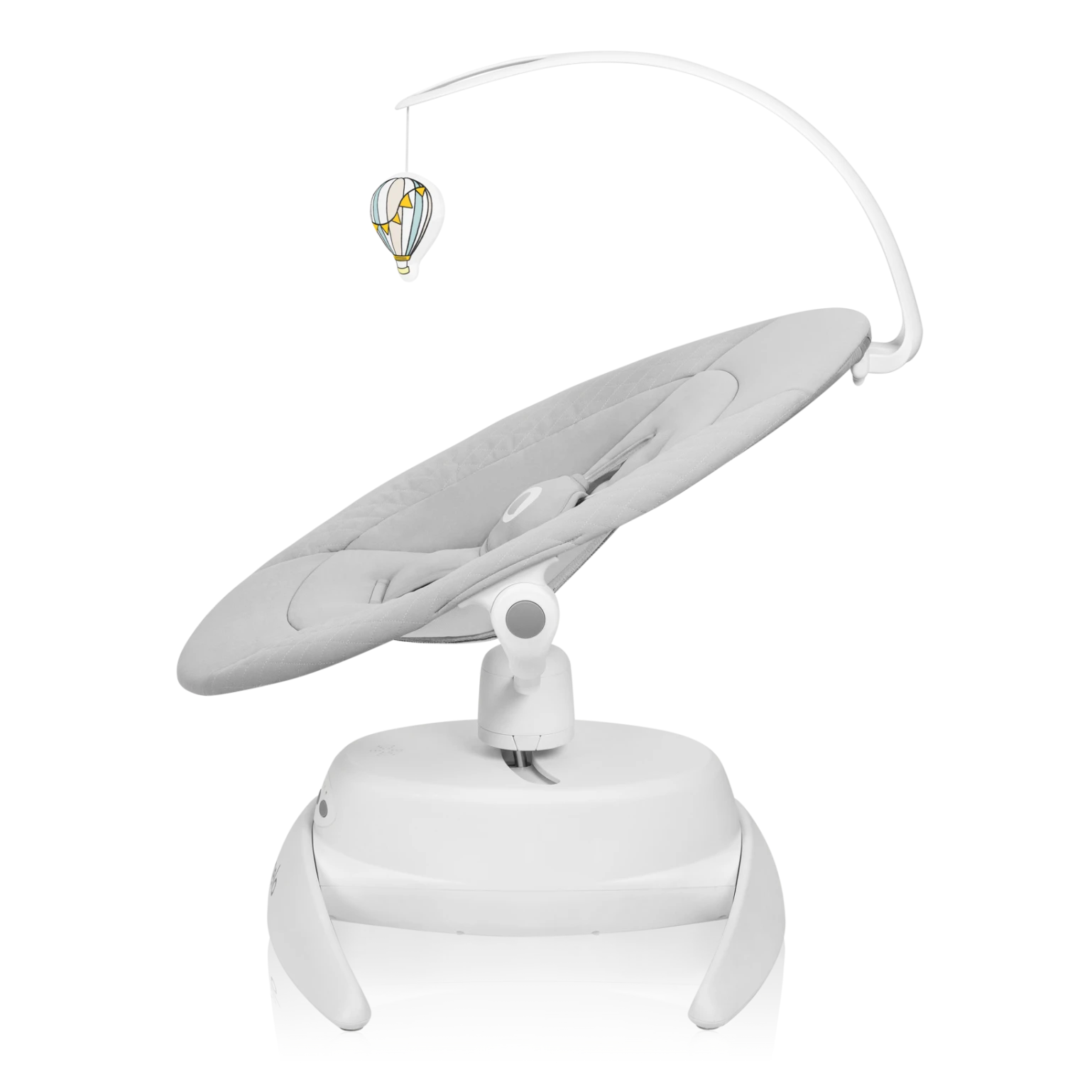 Scaun rotativ 360°: Caracteristica principală a balansoarului Iris este scaunul rotativ la 360°. Acest lucru permite părinților să ajusteze direcția de balansare fără efort și să mențină contactul vizual constant cu bebelușul, îmbunătățind legătura și supravegherea.
