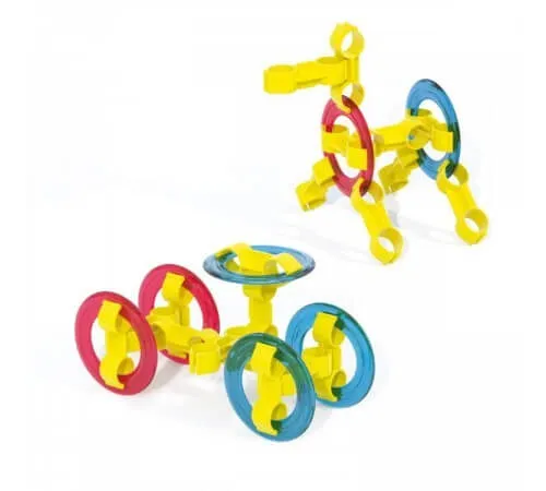 Un joc original de construcție alcătuit din două elemente de plastic colorate: inele mari și o serie de cleme pentru a conecta celelalte elemente și a crea o lume a unor structuri fantastice și figuri tridimensionale. Jocul este distrus în mod intenționat, pentru a da liberă creativității copilului și pentru a garanta orele de joc.