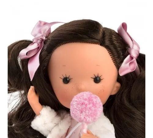 Seria Miss Minis este o noutate uimitoare a brandului Llorens iubit. Această fetiță drăguță, pe nume Miss Dana Star, are 26 cm. înălțime și este foarte stilată. Dana captivează cu ochii negri, pistrui pe obraji și nasul mic. Păpușa este îmbrăcată într-o rochie roz, o haină albă de blană și pantofi albi cu arcuri. Dulciuri și geantă incluse. Papusa este confectionata din vinil moale si are brate, picioare si cap mobile. Păpușile Miss Minis sunt prietene grozave, pregătite pentru tot felul de călătorii. Păpușa este ambalată într-o cutie de carton decorativă. Ne plac papusile spaniole Llorens!