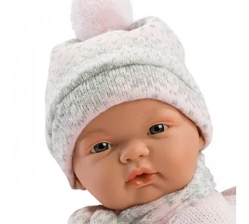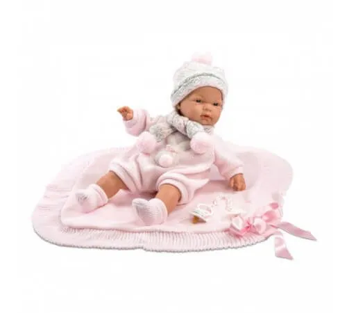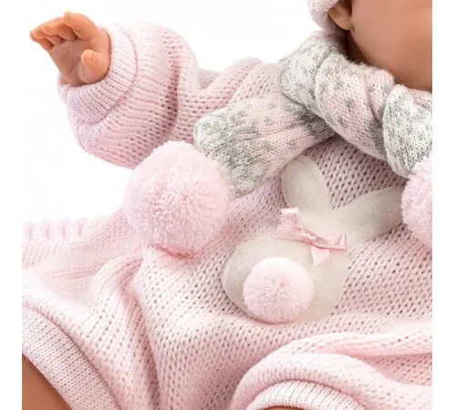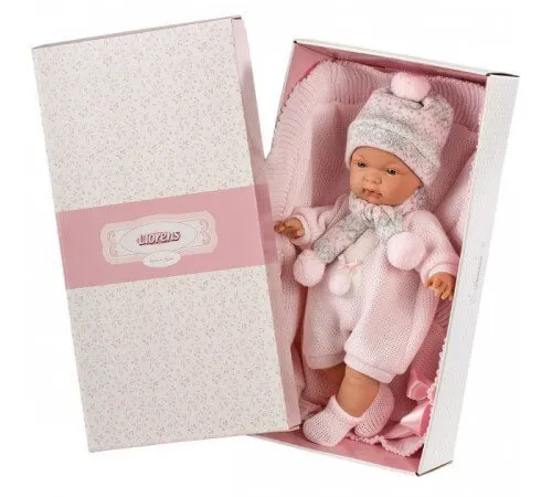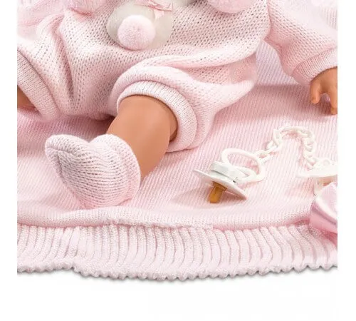 Forme autentice și perfect reproductibile de pui și păpuși corporale, precum și detalii ale feței, cum ar fi ochii, buzele, părul, vă rugăm să vă rugăm să vă rugăm să faceți o prințesă mică și mare! O selecție excelentă de haine de înaltă calitate, culoarea, tăierea, textura și numeroase detalii fac ca aceste păpuși să arate ca niște tovarăși vii și frumoși ai jocurilor copiilor noștri. Joelle 38938 are o dimensiune de 38 cm și este fabricat din vinil moale și plăcut. Are un stomac moale umplut cu căptușeală. Păpușa are un mamelon, când o scoate, strigă și spune: "Mamă, tată." Joelle are ochi albaștri. Ea este îmbrăcată în pijamale roz până în genunchi cu un iepure brodat, pompon și arc. De asemenea, are o pălărie roz-gri, o eșarfă cu un pompon roz și șosete. Setul include, de asemenea, o pătură tricotată cu un arc. Papusa este ambalată într-o cutie elegantă de carton, care este perfectă pentru un cadou.