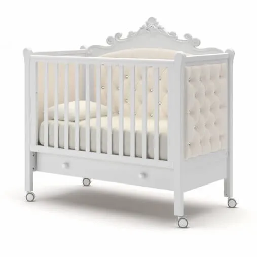Patuc pe roti cu sertar Liona Gandylyan alb – pat fermecător reprezintă întruchiparea unui design atent, confort și buna funcționalitate.