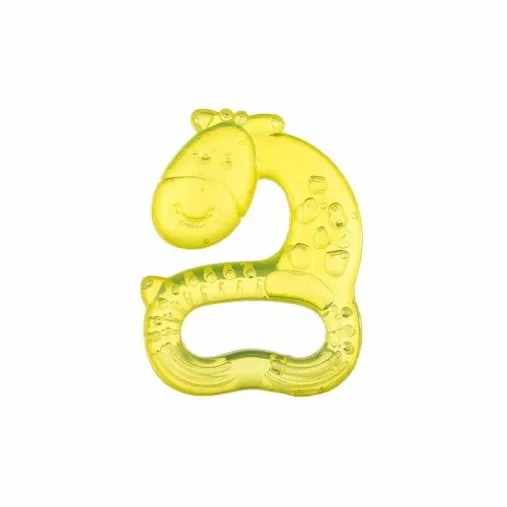 Dințitor minunat în formă de girafa galbena plină cu apă rece. Are proeminențe care vor aduce ușurare gingiilor iritate ale bebelușului tău.