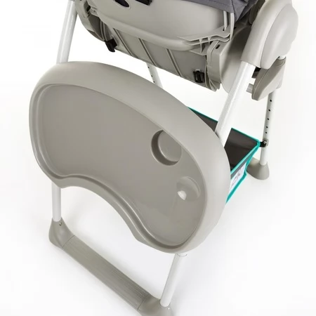 Centura cu prindere in 5 puncte si un suport aditional din plastic ofera siguranta cand bebelusul sta in scaunul lui si mananca la masa. Puteti regla tavita de alimente sau de joaca pentru spatiu mai mare la picioruse. Suportul pentru pahar ofera bauturii o prindere sigura ca sa nu cada nimic. Cu toate acesta, tava poate fi detasata, pentru a se curata, fara probleme daca este necesar.