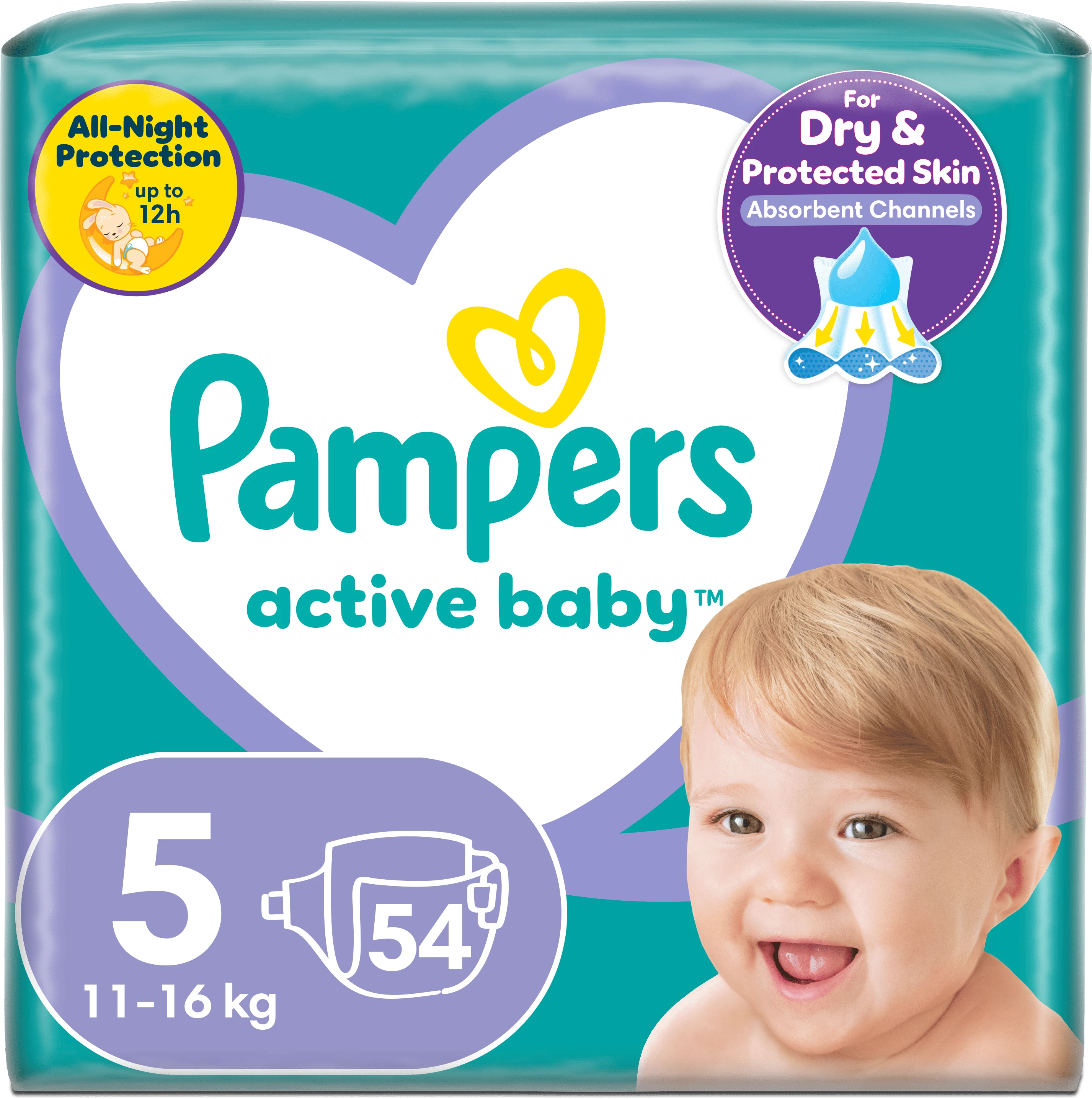 Diminețile sunt pline de chicoteli cu scutecele Pampers Active Baby-Dry. Stratul exterior unic, super-absorbant, în contact permanent cu pielea bebelușului, este conceput pentru a absorbi rapid lichidul și a se usca cât mai repede posibil. Diminețile fericite încep cu scutecele Pampers Active Baby-Dry.