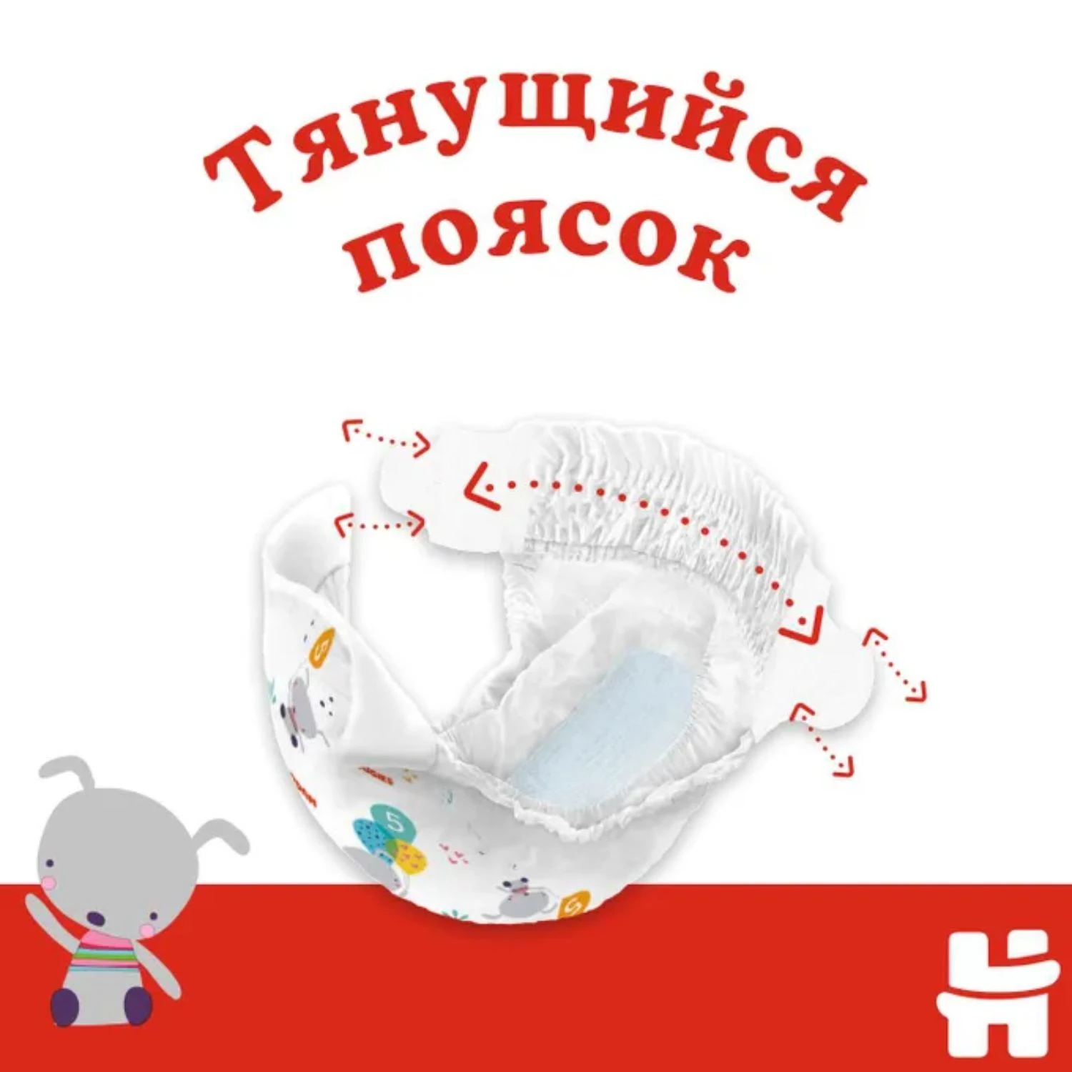 Un bloc-gel special din scutece închide umezeala timp de până la 12 ore, protejând pielea bebelușului de uscăciune. Tehnologie 360° - Bariere elastice moi la nivelul taliei, care se întind și ajută la prevenirea scurgerilor în jurul picioarelor și spatelui.