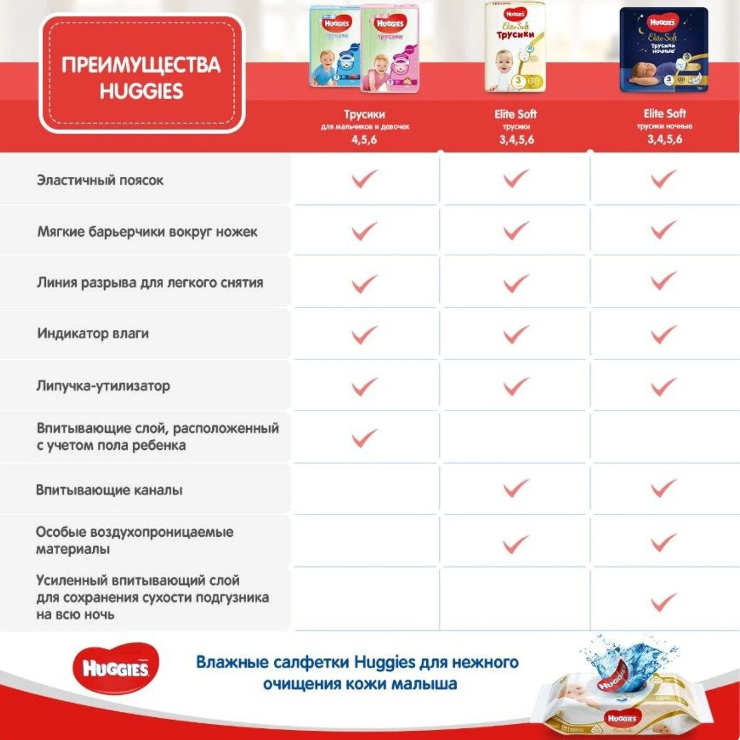 Noile scutece tip chilotei Huggies, cu o bandă elastică în talie, moale „ca un norișor”, au devenit și mai confortabile pentru bebelușii care se mișcă activ. Un strat foarte moale, care asigură o potrivire comodă și elastică fără a pune presiune și care reduce riscul urmelor roșii pe pielea bebelușului. În timpul zilei, banda din talie a scutecului se adaptează la dimensiunea burticii, înfășurând-o ca un norișor. Scutecele-chilotel sunt confecționate din materiale moi cu micropori, care permit pielii să respire. Chiloței uscați pe timp de zi și de noapte, datorită stratului absorbant Dry Touch. Benzi elastice moi la răscroiala picioarelor, care asigură dublă protecție împotriva scurgerilor.