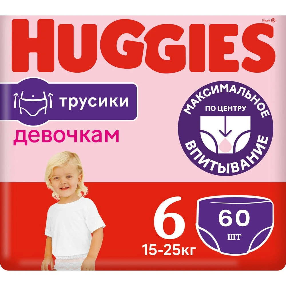 Scutece-chiloței Huggies Girl 6 (15-25 kg), 60 buc.