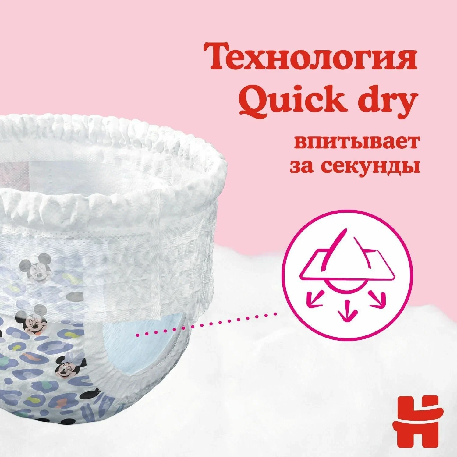 Ușor de scăpat de chiloții utilizați: pur și simplu rupeți cusătura laterală, rulați, fixați cu banda adezivă specială de eliminare.