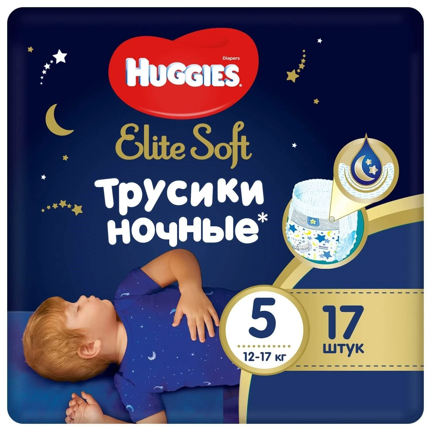 Scutece-chiloței Huggies Elite Soft Overnights 5 (12-17 kg), 17 buc.