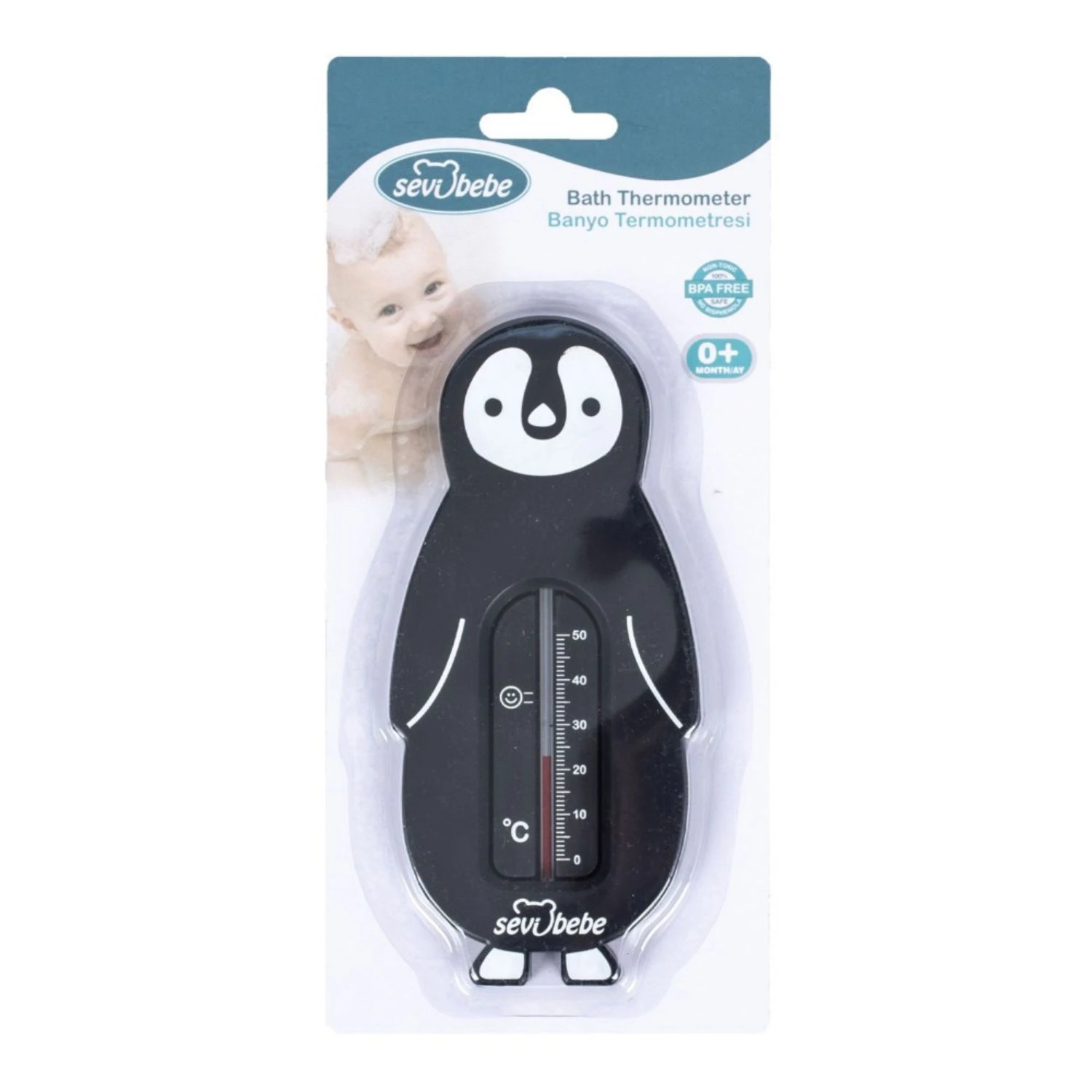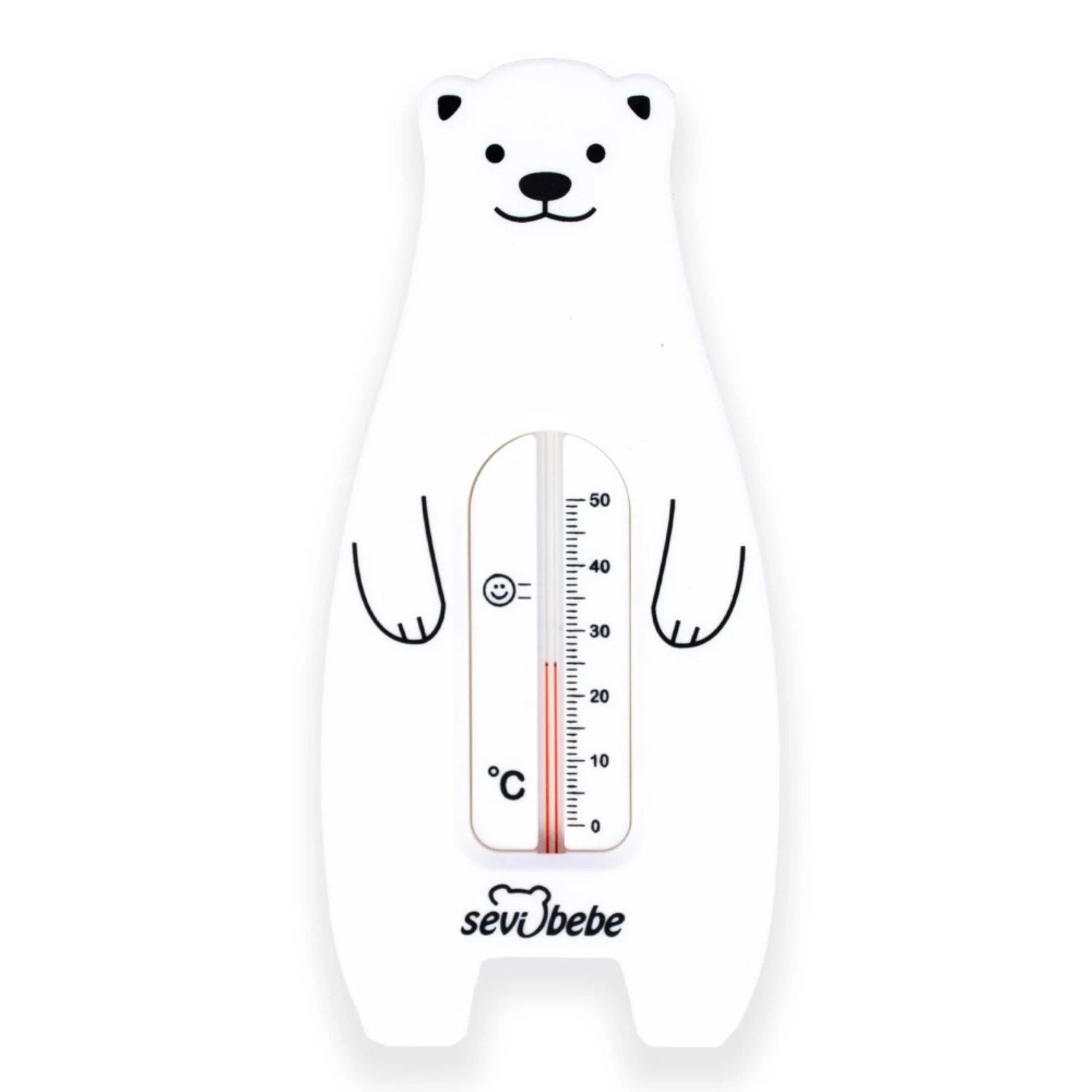 Termometru pentru baie Sevi pentru a măsura temperatura, atât în cameră, cât și în cădița bebelușului. Ajută copilul să se bucure de baie la temperatura ideală a apei. Pentru o măsurare mai fiabilă, scufundați termometrul complet în apă. Temperatura ideală a apei pentru copilul dumneavoastră ar trebui să fie de 35-37°C. Nu depășiți 38°C.