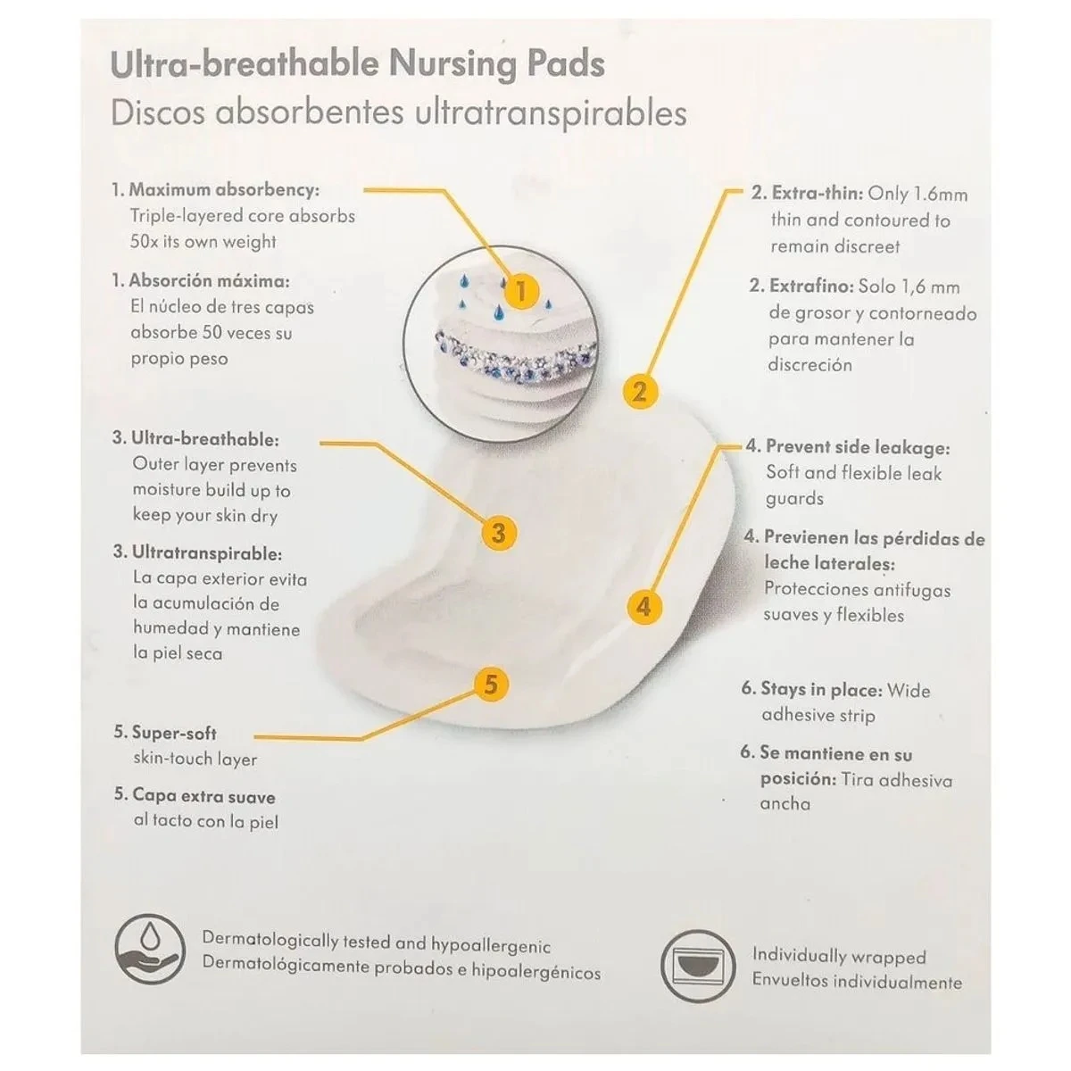 Materialul subțire și respirabil este delicat cu pielea, asigurând o senzație de uscăciune. Stratul interior super absorbant captează rapid laptele matern, prevenind scurgerile și petele pe haine. Banda adezivă de fixare menține discul la locul său chiar și în timpul mișcărilor active.