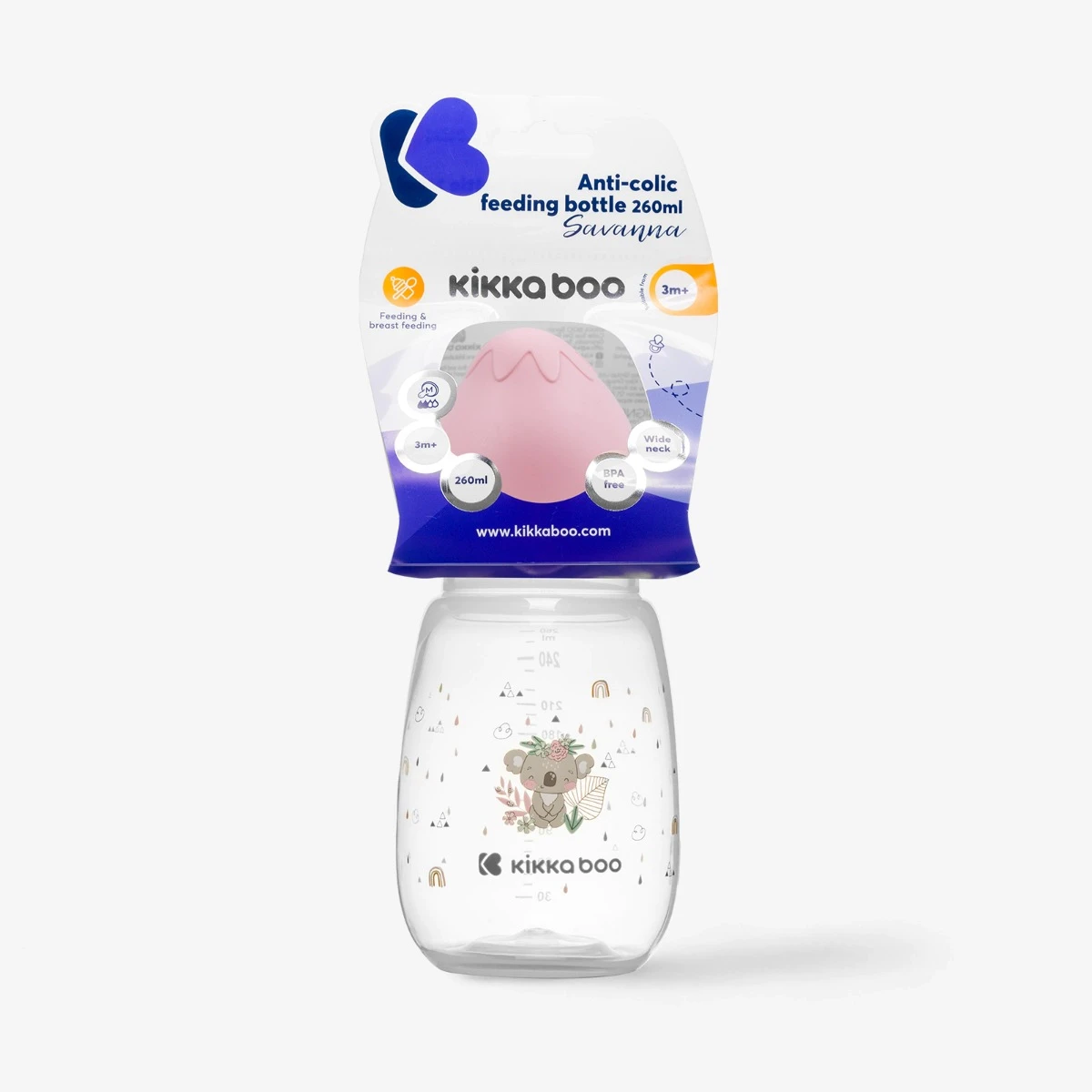 Biberon pentru bebeluși din plastic Kikkaboo Savanna Pink, 260 ml