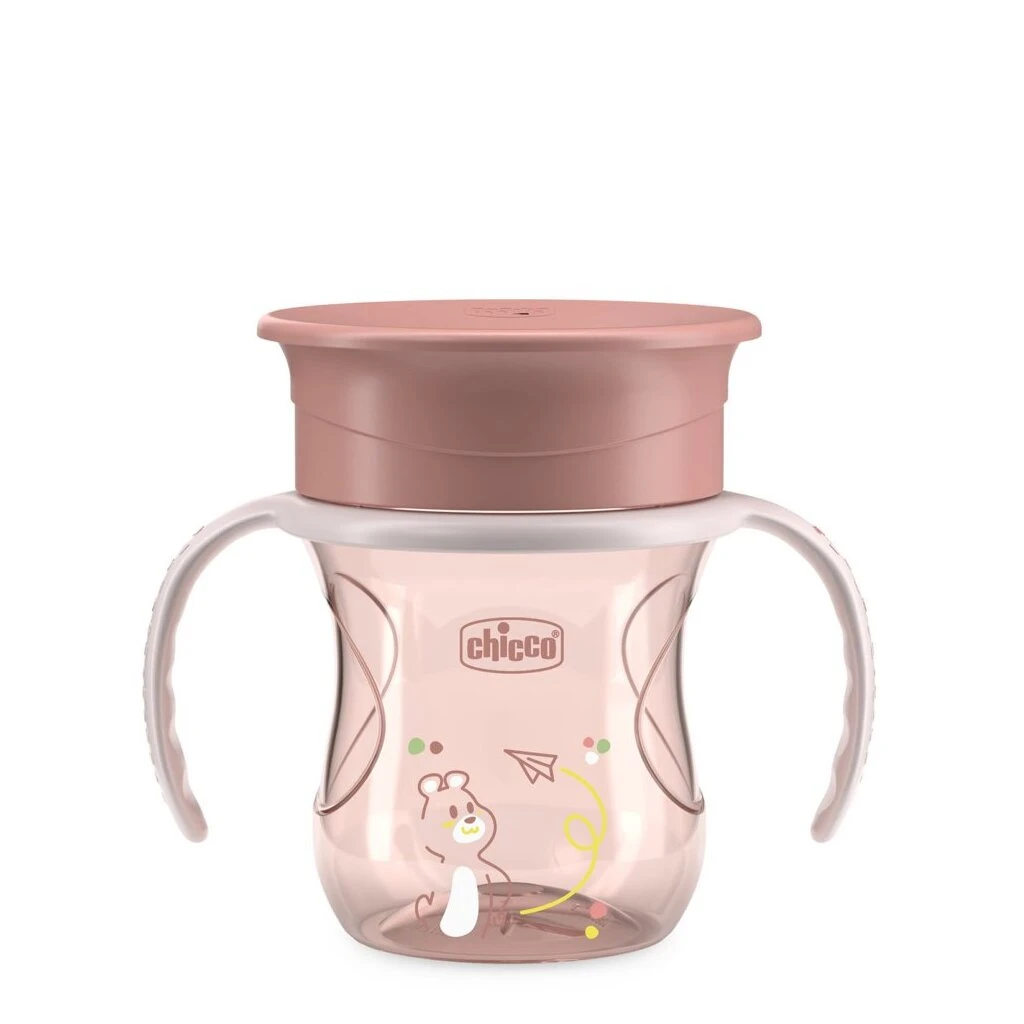 Cana Chicco Perfect 360 ajută copilul să descopere băutul independent într-un mod natural și sigur, oferind control complet asupra fluxului și confort pentru părinți.