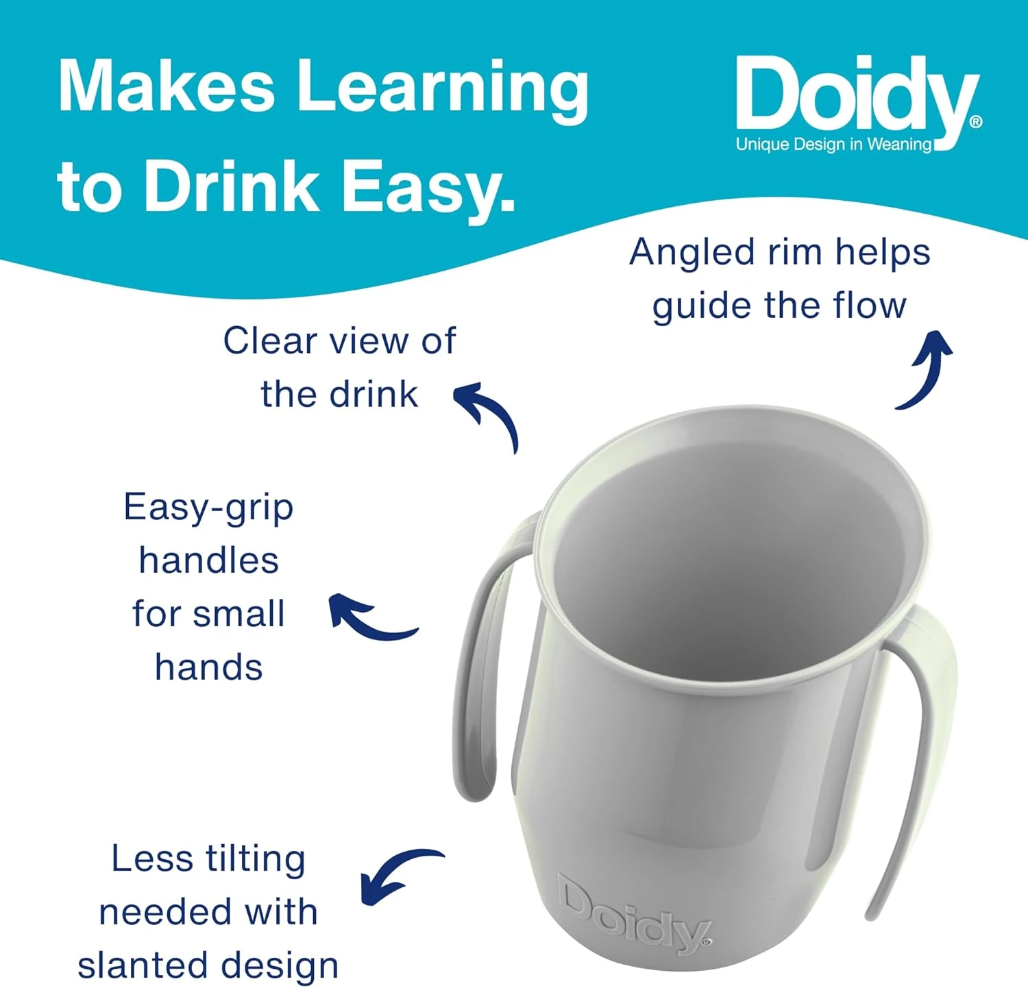 Cana Doidy este un produs inovator, creat pentru a ajuta bebelușii să învețe să bea independent, într-un mod natural și sănătos. Cu un design unic, înclinat și prevăzută cu două mânere, această cană este ideală pentru copiii de la aproximativ 3 luni, facilitând tranziția ușoară de la alăptare la băutul dintr-o cană deschisă.