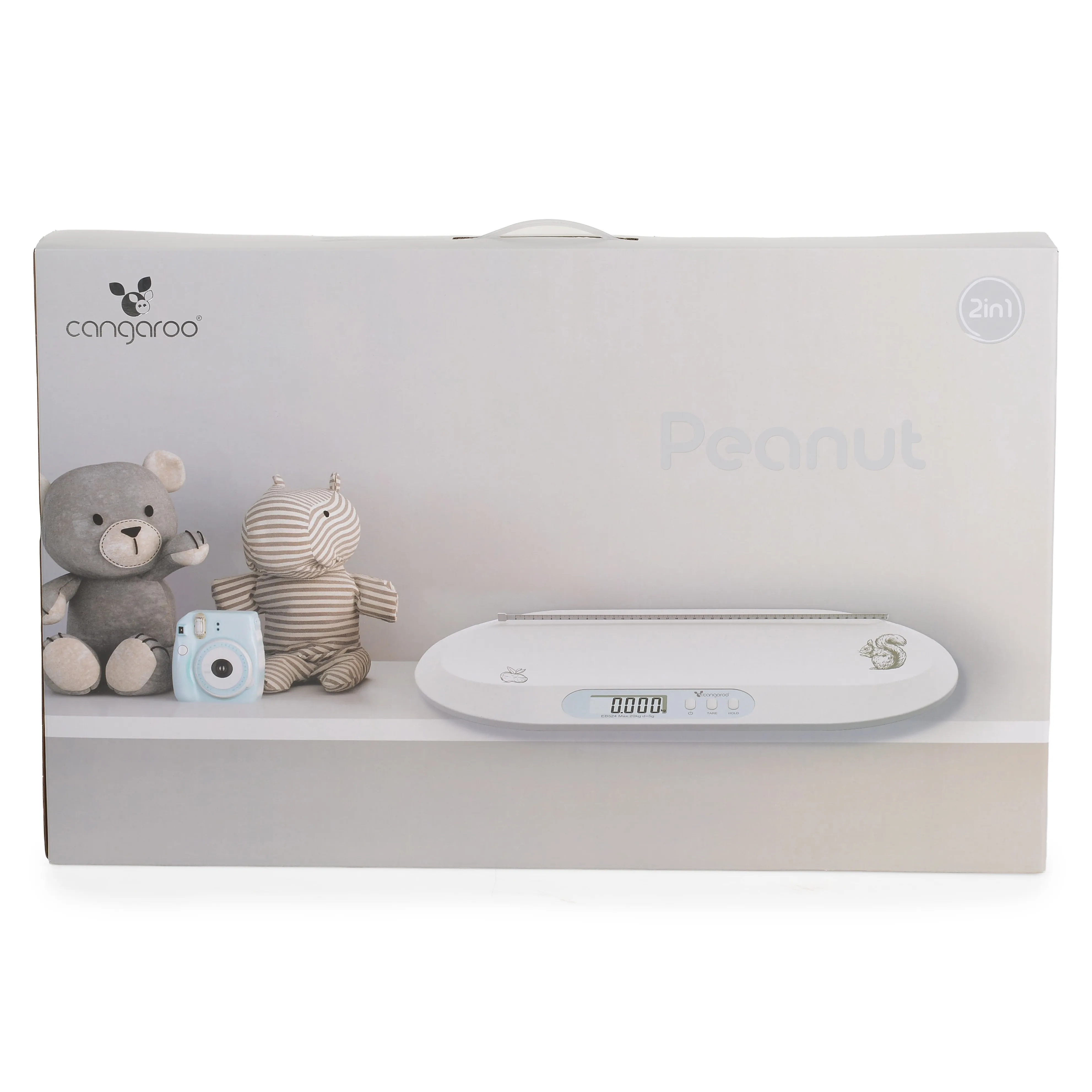 Cântarul electronic Moni Peanut de la Cangaroo este un ajutor practic pentru monitorizarea creșterii și dezvoltării bebelușului. Modelul permite măsurarea a doi indicatori esențiali: greutatea și înălțimea, facilitând îngrijirea zilnică și urmărirea evoluției copilului încă de la o vârstă fragedă.
