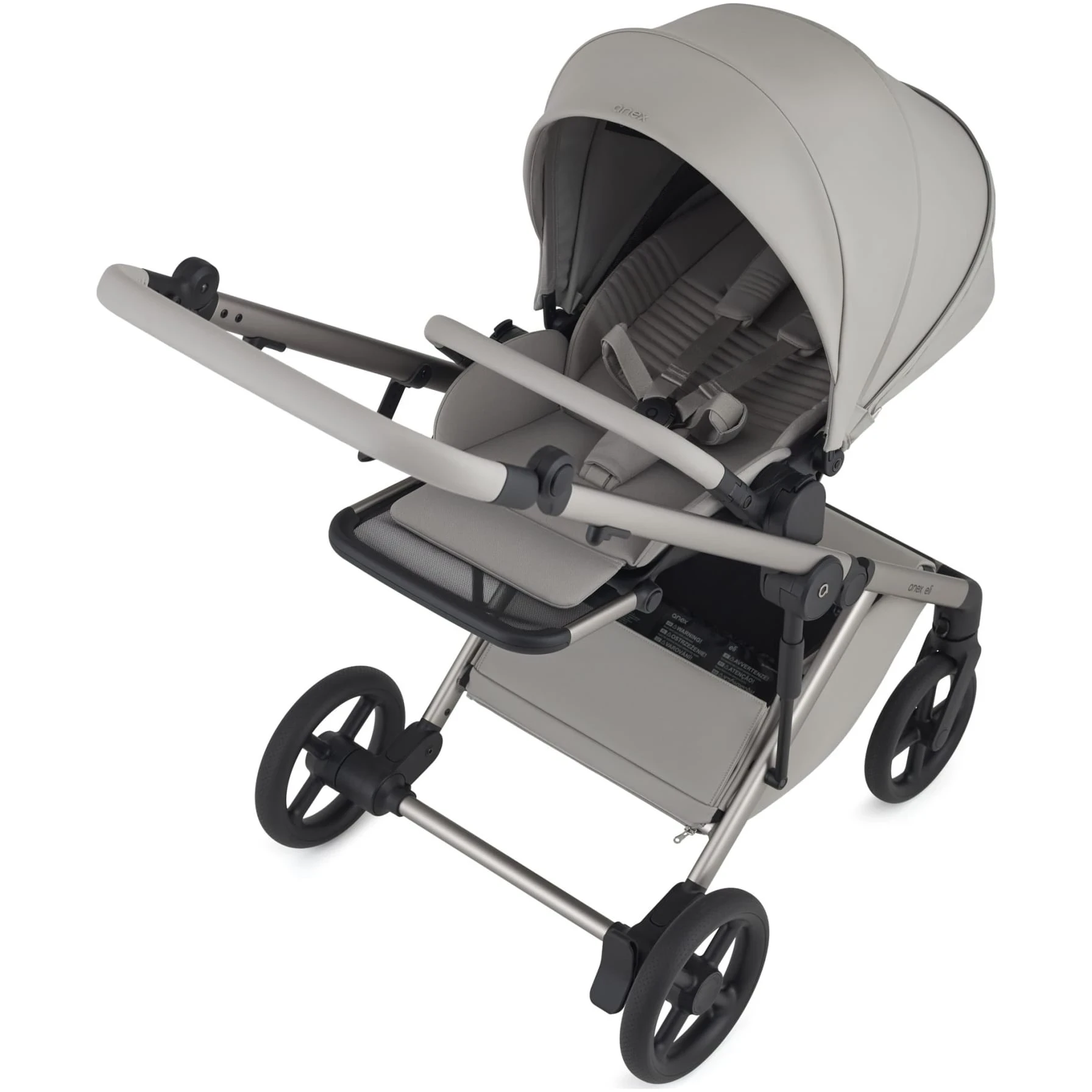 Scaunul de plimbare Anex Eli se pliază în ambele direcții, permițând părinților să transporte căruciorul cu ușurință atunci când este necesar. Adaptatoarele de înălțime sunt incluse în set și asigură o flexibilitate și confort mai mare pentru familiile cu înălțimi diferite.