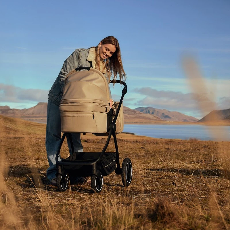 Design 2-în-1: landou XL spațios, utilizabil pe tot parcursul anului. Landoul excepțional de spațios (lățime interioară: 36 cm!) oferă confort bebelușului chiar și atunci când este învelit într-un sac de dormit, ceea ce face căruciorul ideal pentru utilizare iarna. Landoul se pliază plat și poate fi folosit și ca purtător pentru bebeluș, fiind testat și certificat în acest scop.