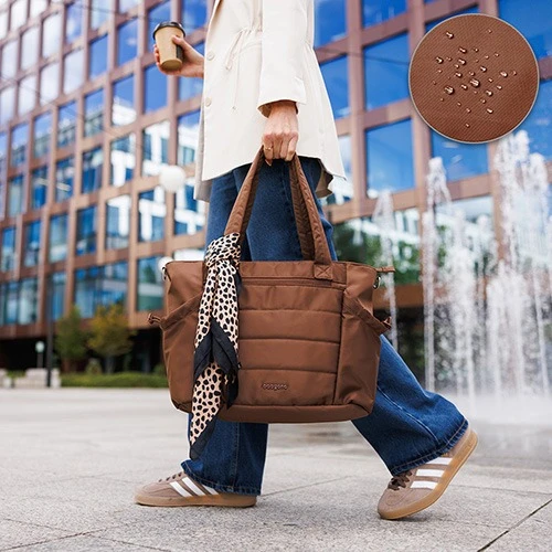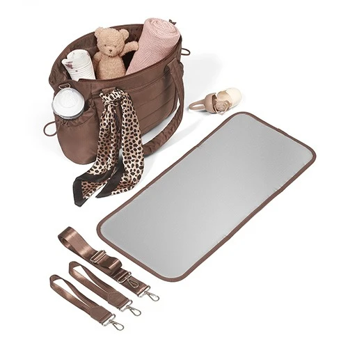Geanta include o saltea groasă pentru schimbat, ideală pentru plimbări și călătorii. Materialul impermeabil protejează conținutul indiferent de vreme și este ușor de curățat.
