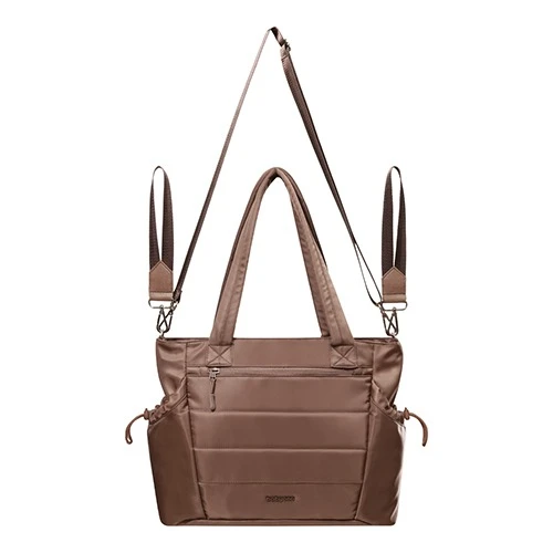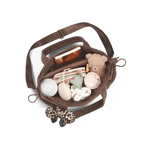 Poate fi purtată în trei moduri: prinsă de cărucior cu ajutorul curelelor detașabile, pe umăr cu breteaua reglabilă sau în mână datorită mânerelor lungi.