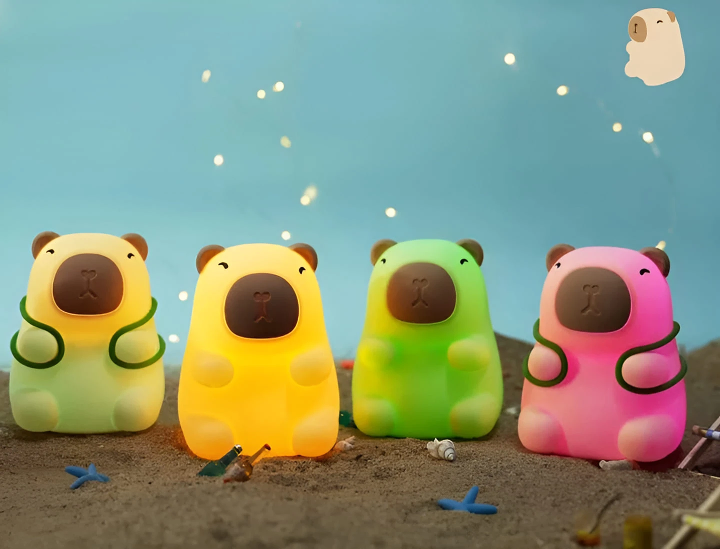 Lampă de noapte LED RGB Mary’s Kapibara Tourist este alegerea perfectă pentru cei care caută un iluminat extraordinar care îmbină modernitatea, stilul și funcționalitatea. Poate fi un cadou minunat pentru cei dragi sau un accent unic în interiorul tău.