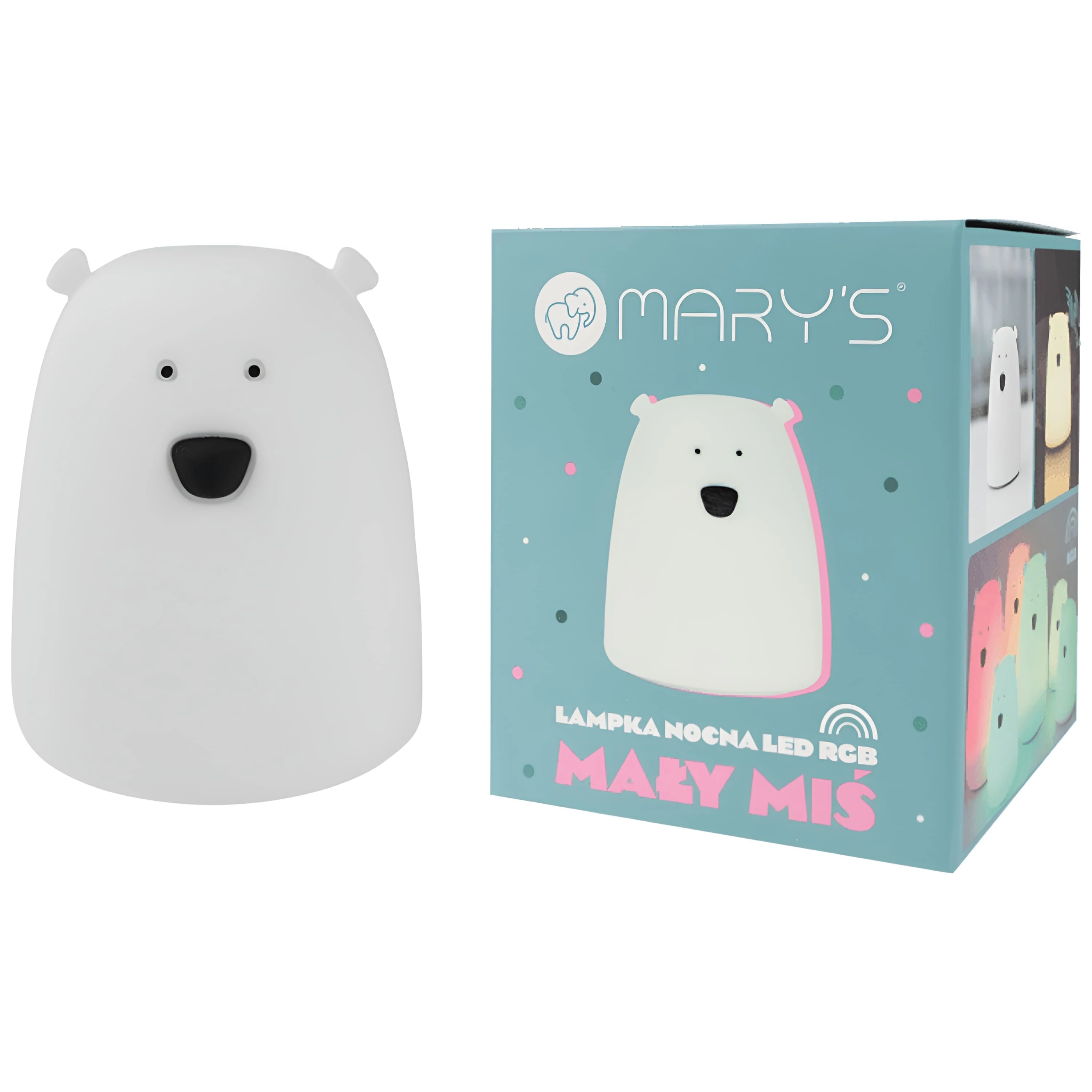 MARY'S LED BEAR LAMP SMALL WHITE RGB+WW /NB este o lampă de noapte fermecătoare și practică, care combină iluminarea RGB multicoloră și lumina albă caldă într-un design compact, ideal pentru copii. Perfectă pentru dormitorul unui copil, camera bebelușului sau ca element decorativ, această lampă oferă o combinație perfectă între estetică și funcționalitate.