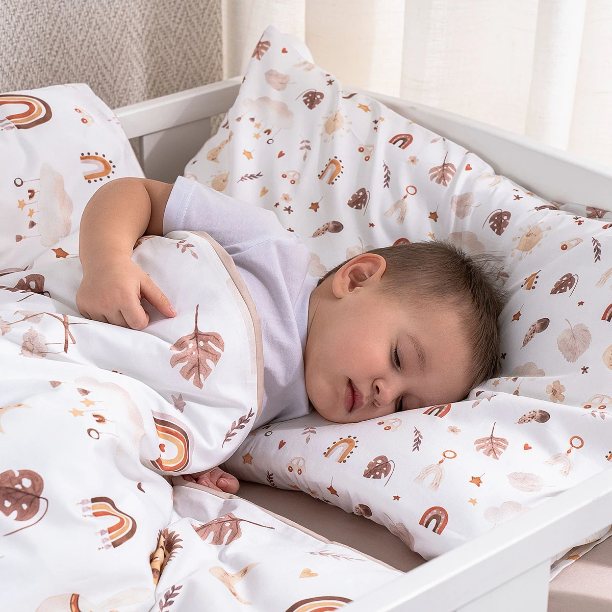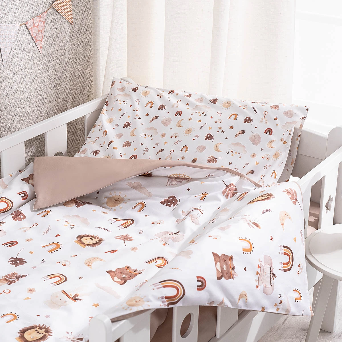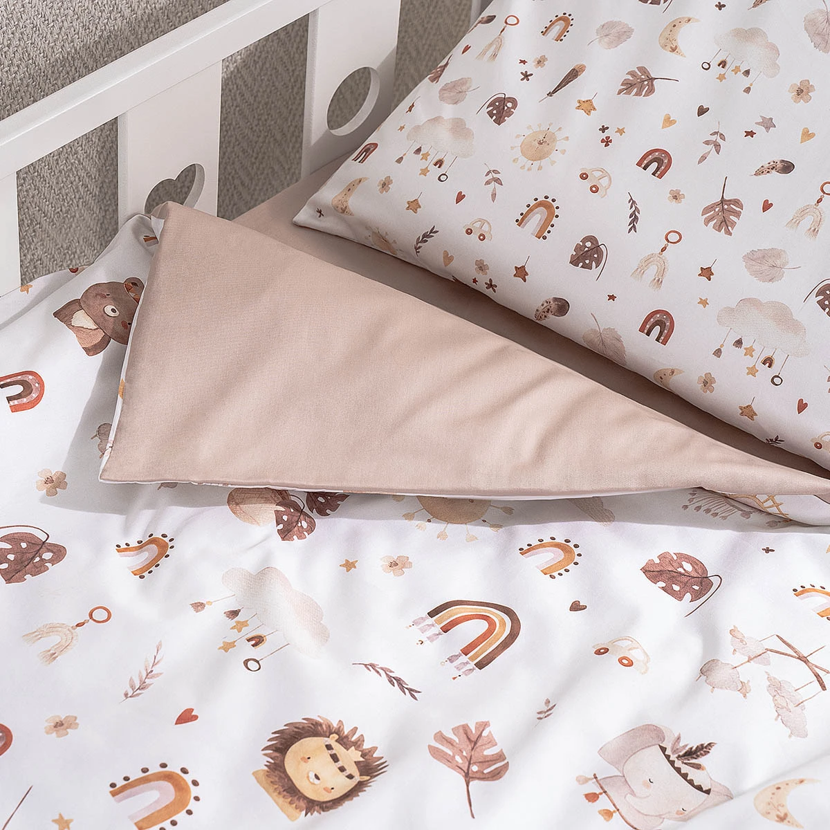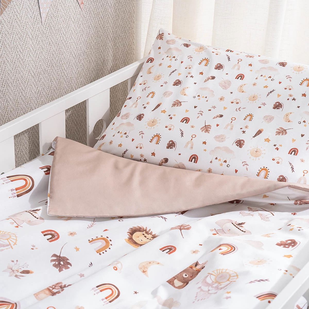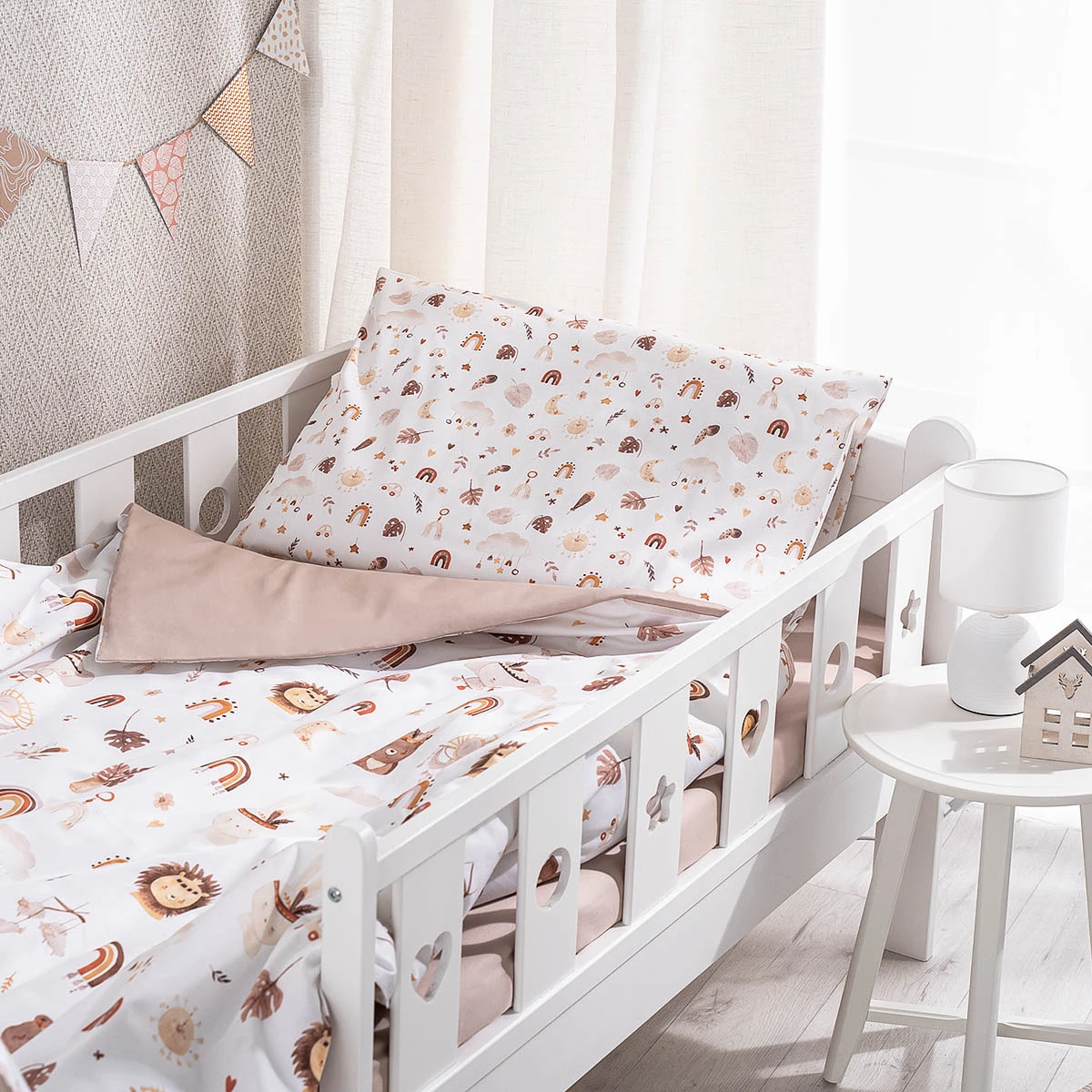Un nou design cu care puteți rămâne chiar și pe măsură ce creșteți. Setul Boho este conceput în două dimensiuni: pentru un pătuț nou-născut 120x60 cm și un pat mai mare, 160x80 cm.