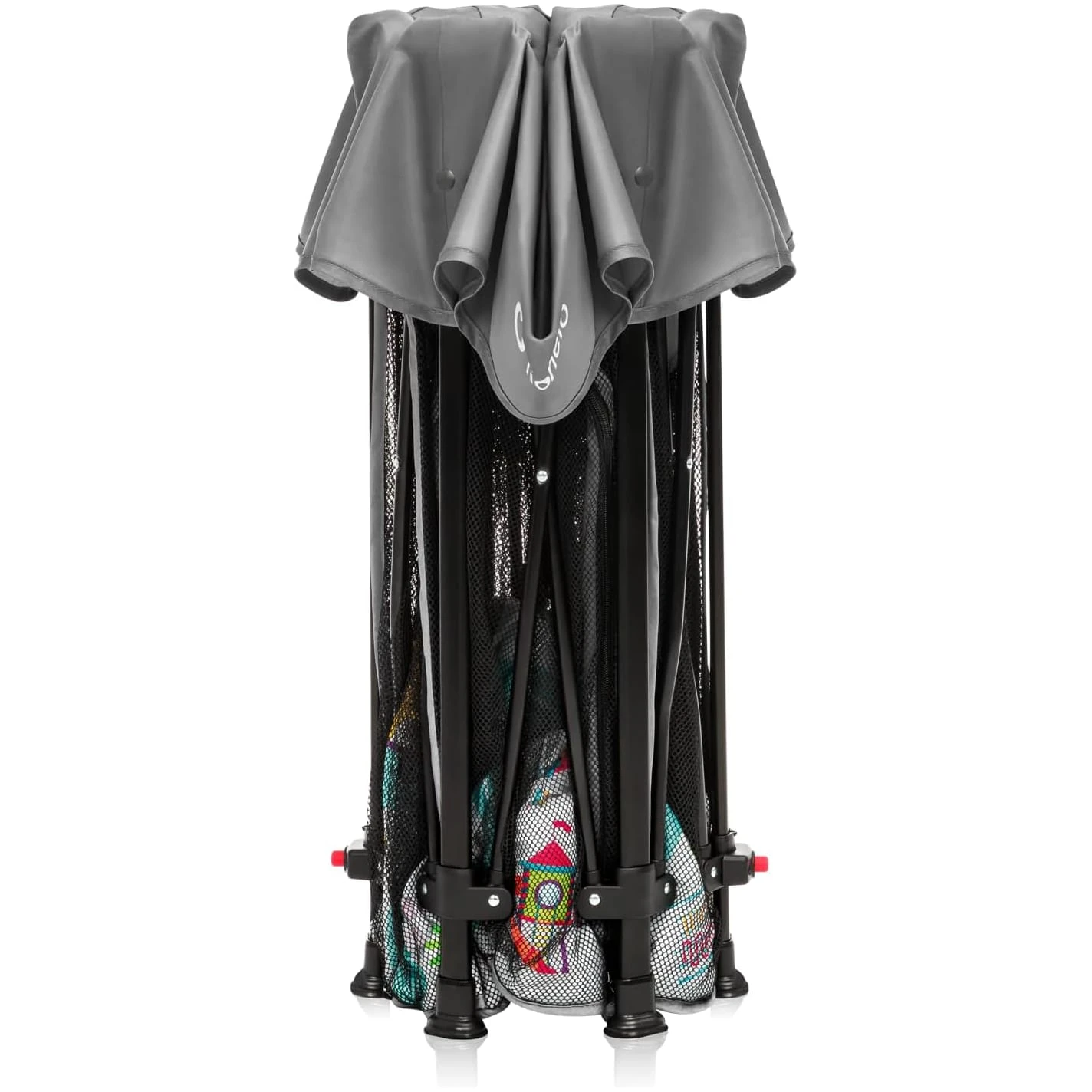 Pereții laterali sunt confecționați din plasă de înaltă calitate, permeabilă la aer. Aceasta garantează nu doar o circulație optimă a aerului, ci îți permite și să menții contactul vizual constant cu cel mic. Astfel, copilul simte apropierea ta, iar tu ai control deplin asupra siguranței sale.