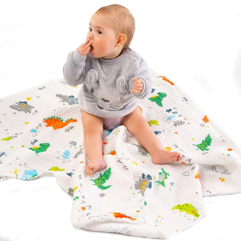 Păturică Akuku Muselin Dinosaurs, 110×105 cm