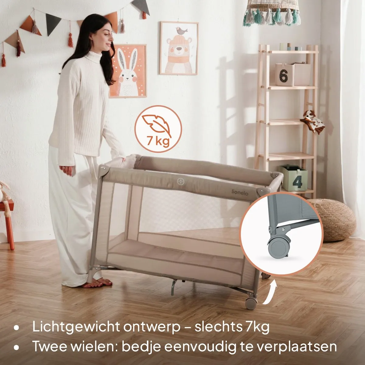 Lionelo Amelie este un pătuț 3 în 1 compact și practic, ideal pentru utilizarea zilnică acasă sau în deplasare. Dimensiunile sale reduse și greutatea de doar 7 kg îl fac perfect pentru spații mici și ușor de transportat.
