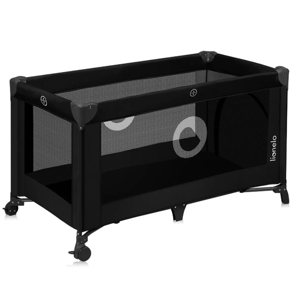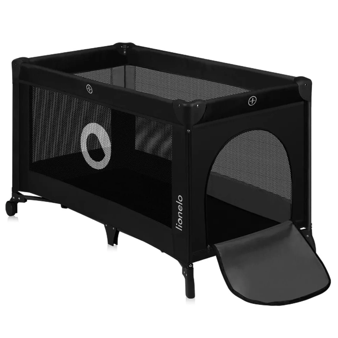 Intrarea laterală permite copilului să intre singur. Cele 2 rotițe facilitează deplasarea pătuțului prin casă, iar laturile din plasă asigură o ventilație bună și permit menținerea contactului vizual între copil și părinte. Acest pătuț este util atât în călătorii, cât și acasă.