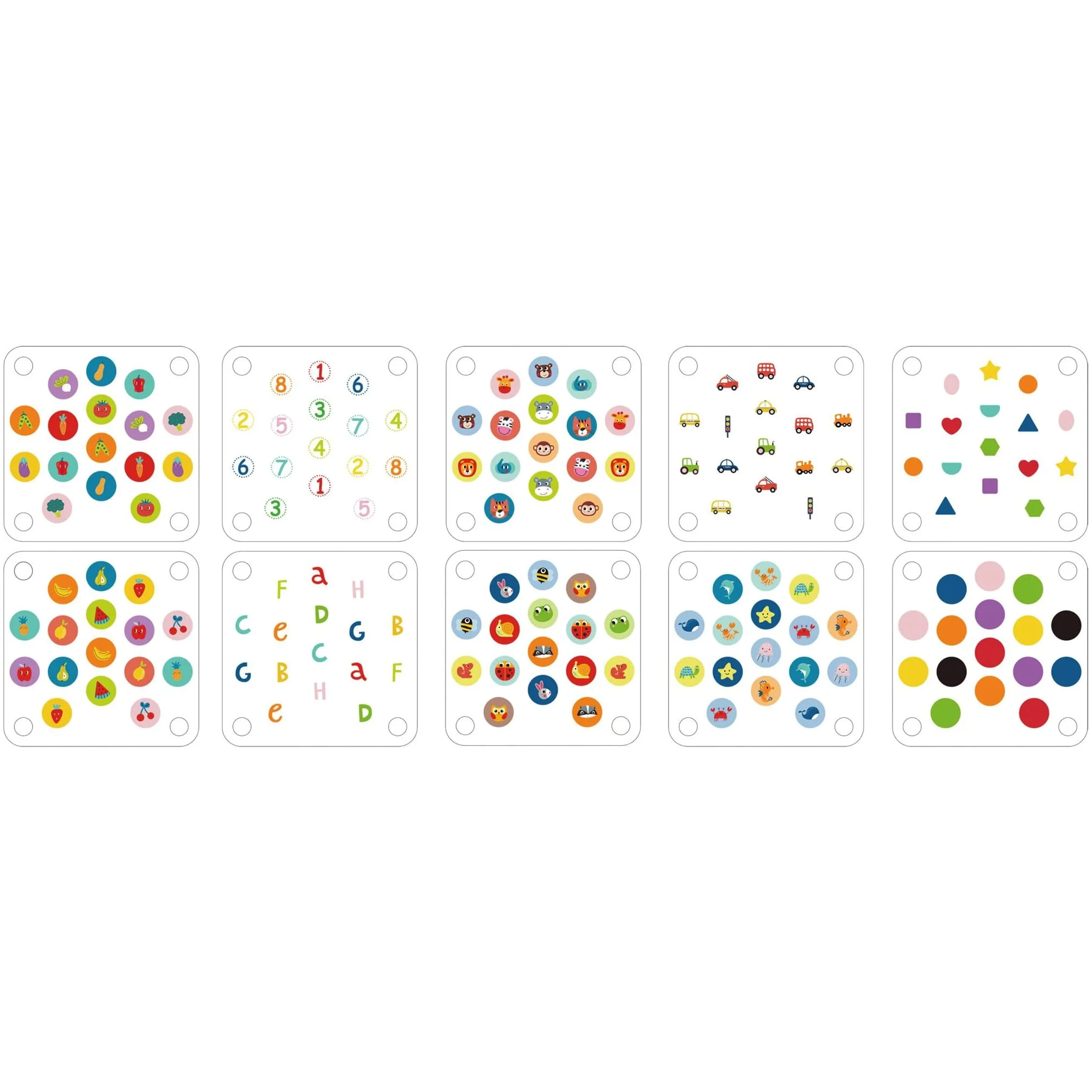 Joc de memorie de la Tooky Toy — un joc educativ unic pentru dezvoltarea memoriei. Cu cel puțin 5 cărți de joc față-verso, vei avea parte de multă distracție. Descoperă culorile, formele, figurile, cifrele, literele și animalele!