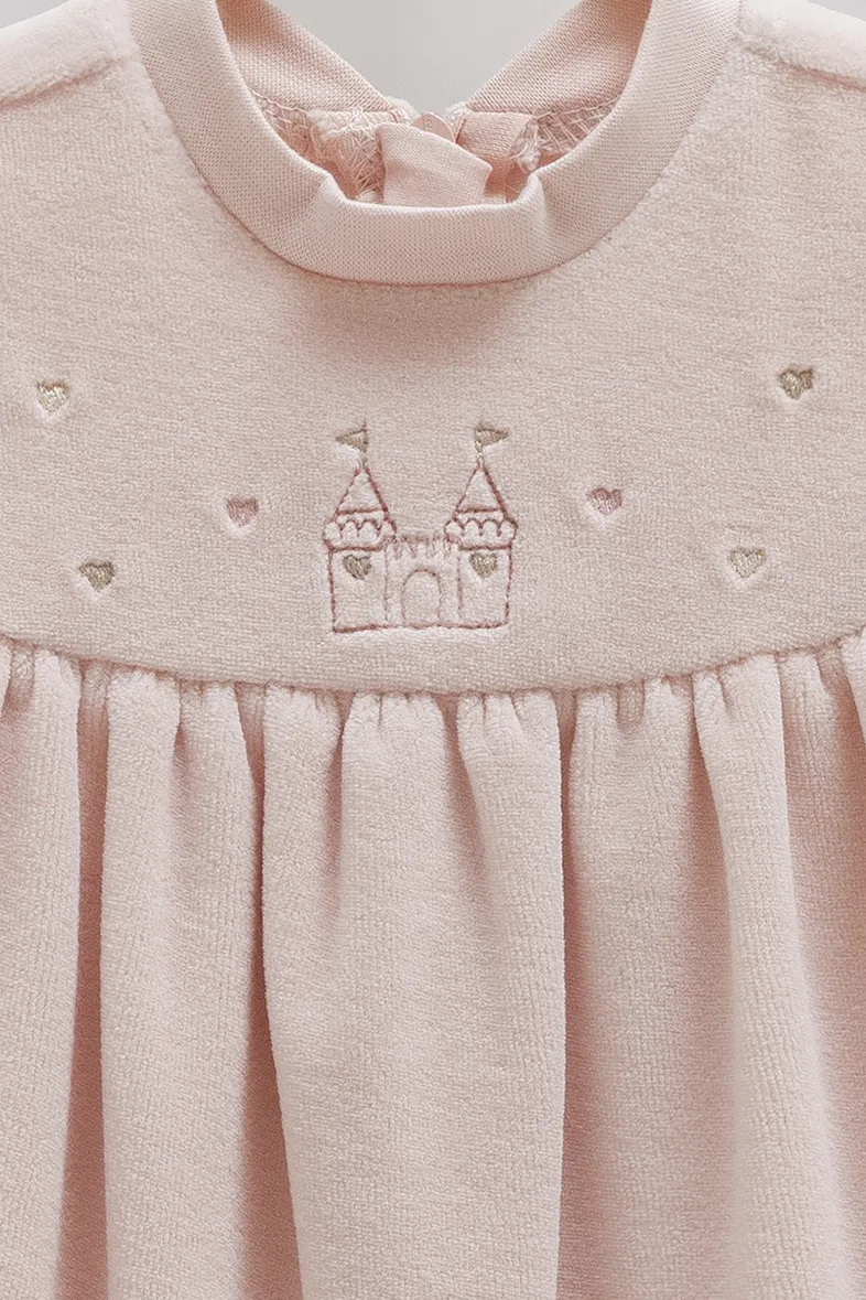 Salopeta Caramell Mild Castle Pink este o alegere practică și elegantă, oferind bebelușului confort maxim și un aspect adorabil în orice moment al zilei.