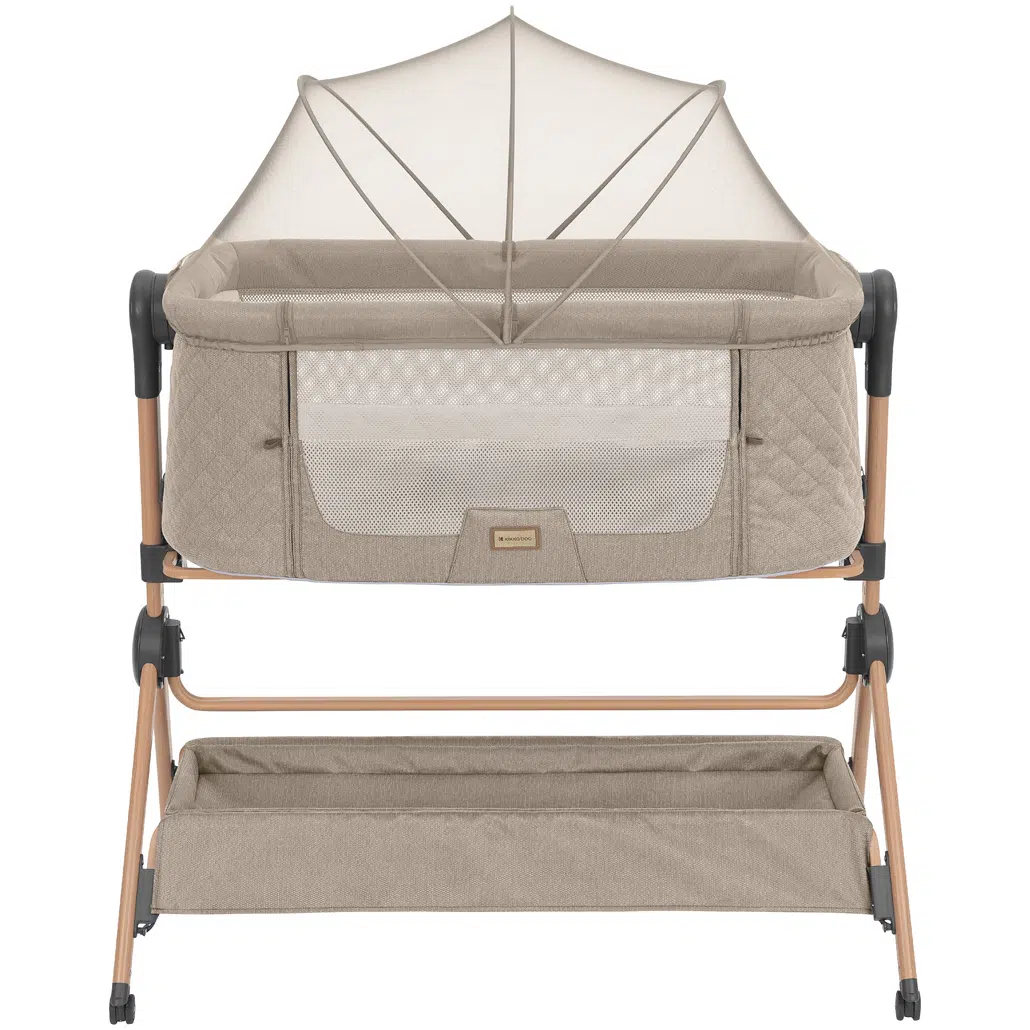 - Pătuț lateral – Potrivit de la naștere până la 6 luni (până la 9 kg), cu înălțime reglabilă, poziție anti-reflux, panouri din plasă pentru o bună circulație a aerului, lateral rabatabil și curea pentru fixarea de patul părinților, pentru un somn liniștit.