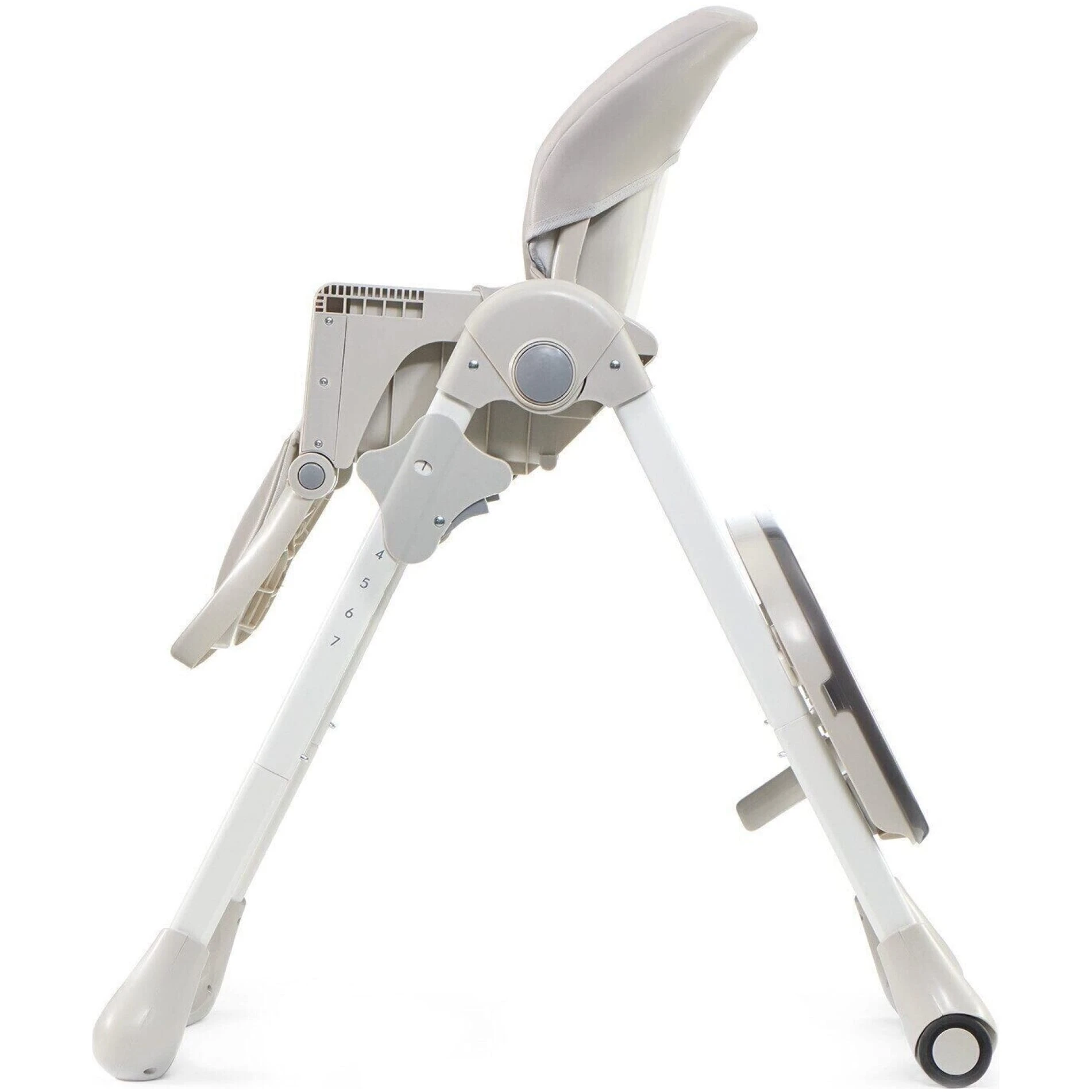 Plierea scaunului YUMMY este extrem de simplă. Puteți fixa tăvița pe picioarele din spate ale scaunului, astfel încât acesta să ocupe foarte puțin spațiu după pliere. De asemenea, poate fi mutat cu ușurință datorită roților din cauciuc și mânerului de transport situat pe spătar.