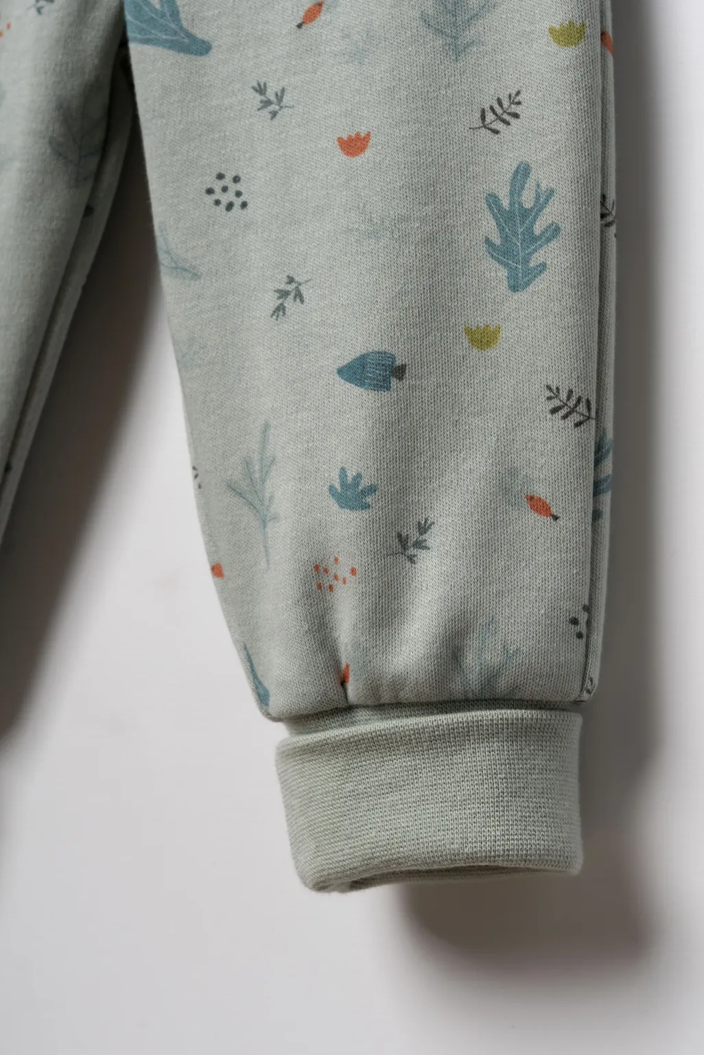 Setul BabyCosy Ecru & Green este un комплект confortabil și practic pentru bebeluși, ideal pentru purtare zilnică. Bluza bej cu buzunare decorative și pantalonii verzi cu tematică marină oferă un aspect modern și vesel.