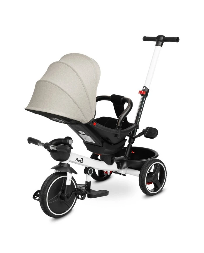 DASH este o tricicletă versatilă care combină funcționalitatea unui cărucior de plimbare cu confortul unei triciclete clasice și bucuria explorării. Datorită scaunului pivotant, suporturilor reglabile pentru picioare și mânerului ergonomic pentru părinți, modelul DASH se adaptează perfect nevoilor copilului și adultului.