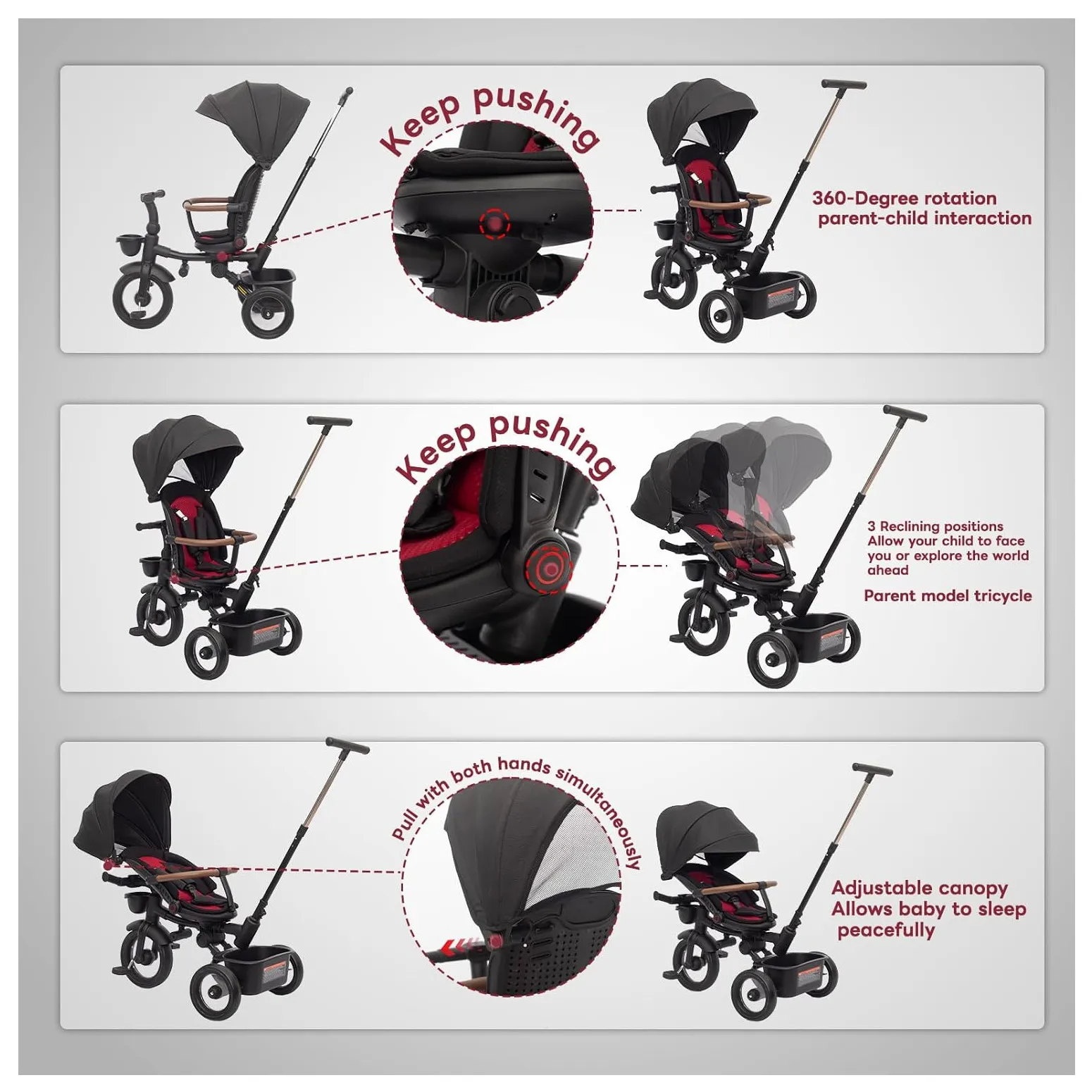 Tricicleta Epid Ultra poate fi adaptată pe măsură ce copilul crește, transformându-se dintr-un vehicul controlat de părinte într-o tricicletă clasică, ideală pentru dezvoltarea independenței și a abilităților de mers.