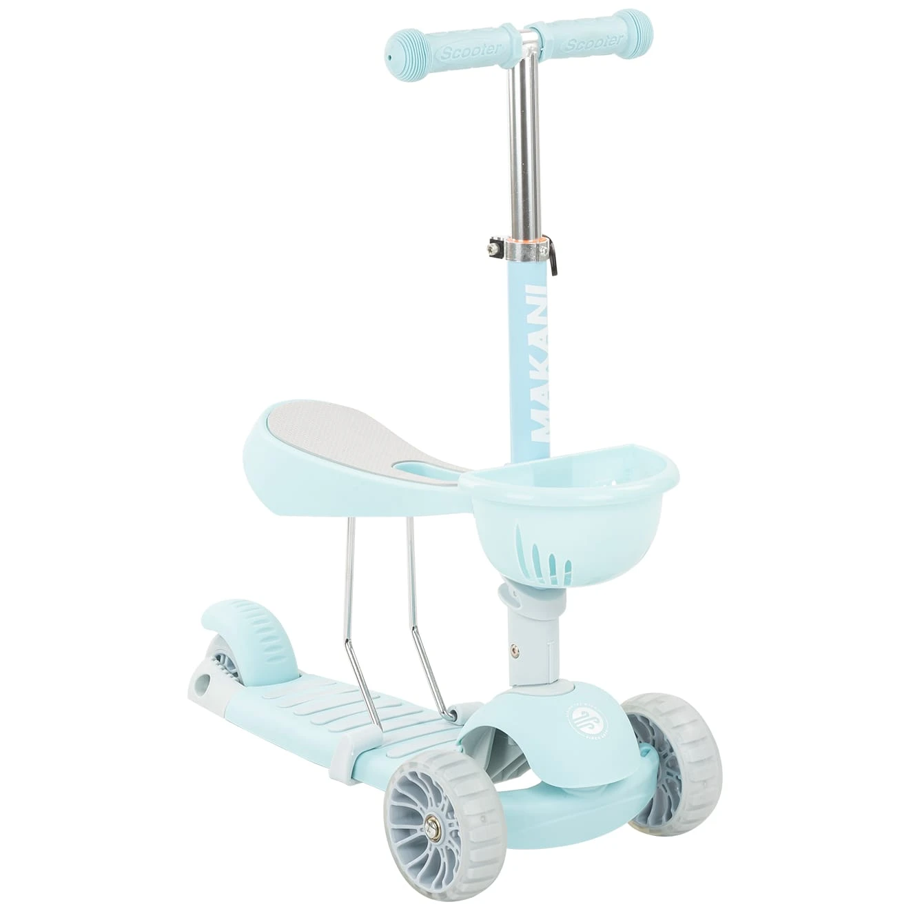 Poate fi folosit atât ca trotinetă, cât și ca jucărie de călărit.