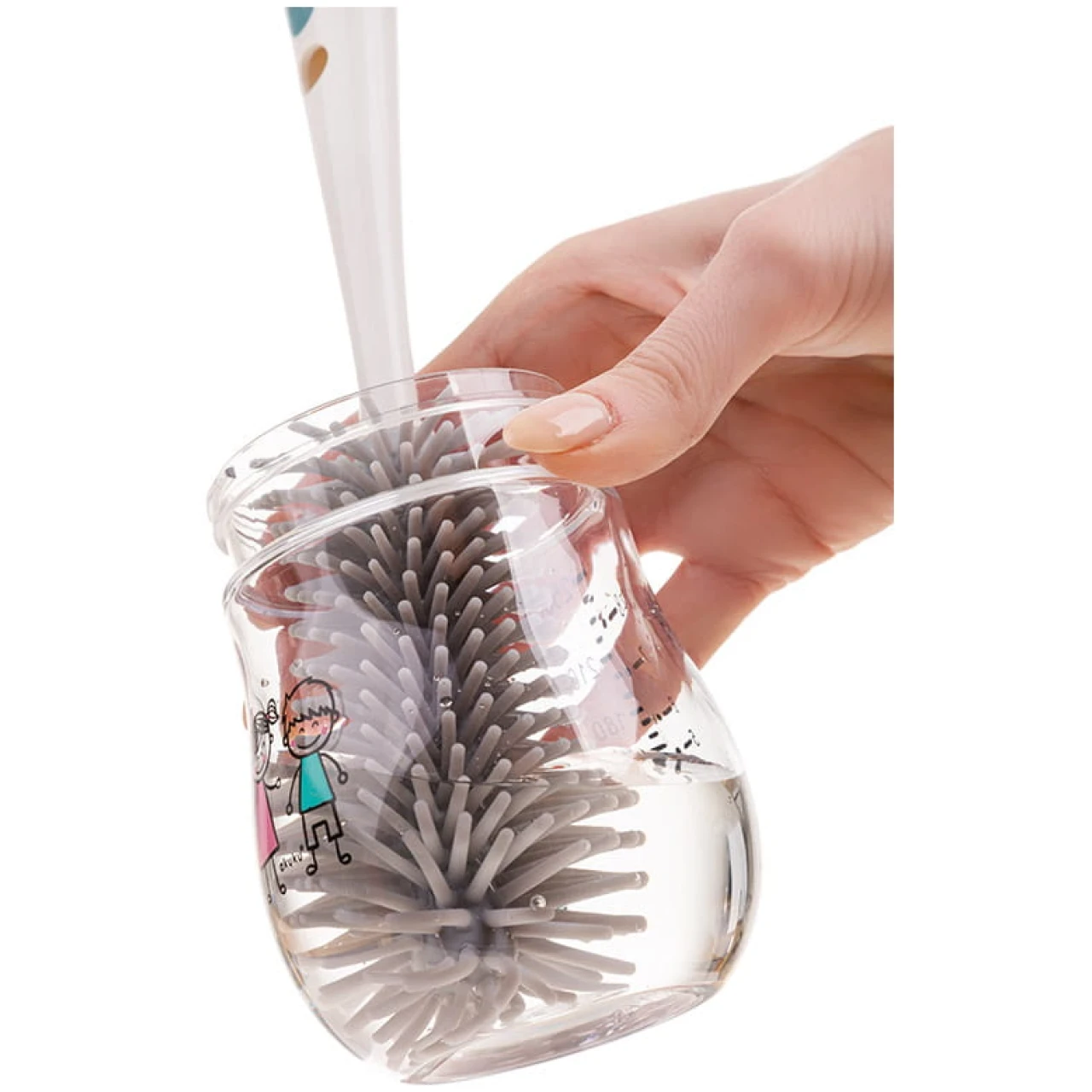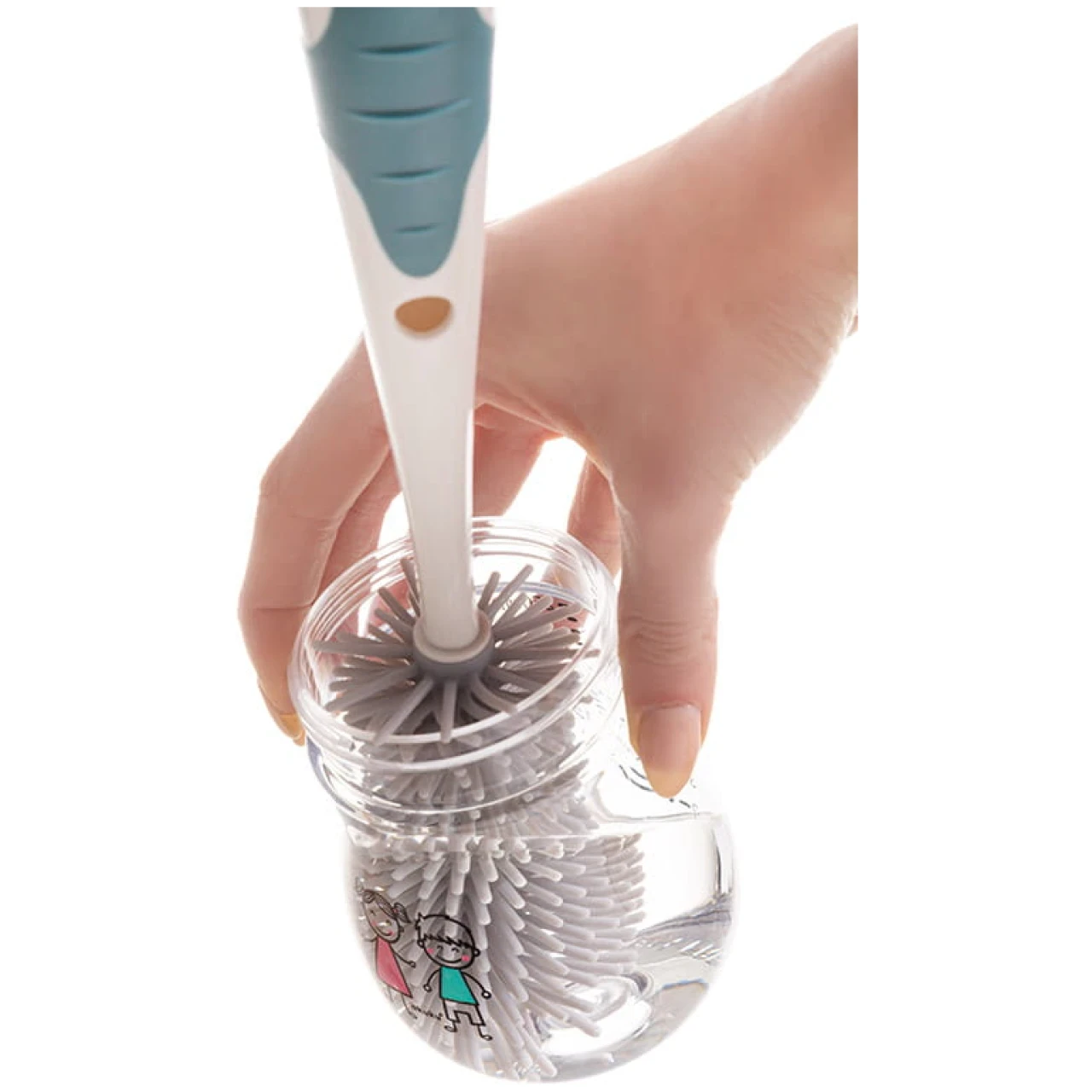 Чистка детских бутылочек, кружек и сосок больше не будет казаться полной хлопотной задачей с этой удобной 2-в-1 щеткой из силикона с подставкой. Прочные щетинки сделаны из мягкого силикона, чтобы предотвратить появление царапин при чистке. Меньшая съемная щетка для чистки сосок хранится внутри ручки, что позволяет держать ее чистой и без пыли во время хранения. Гигиеничная, вертикальная подставка для хранения имеет поддон для стока, так что после использования излишняя вода стечет в поддон и будет готова к сливу. Длинная эргономичная ручка отлично подходит для чистки труднодоступных мест. Изготовлено из прочных и безопасных материалов, не содержащих бисфенол-А (0% BPA).