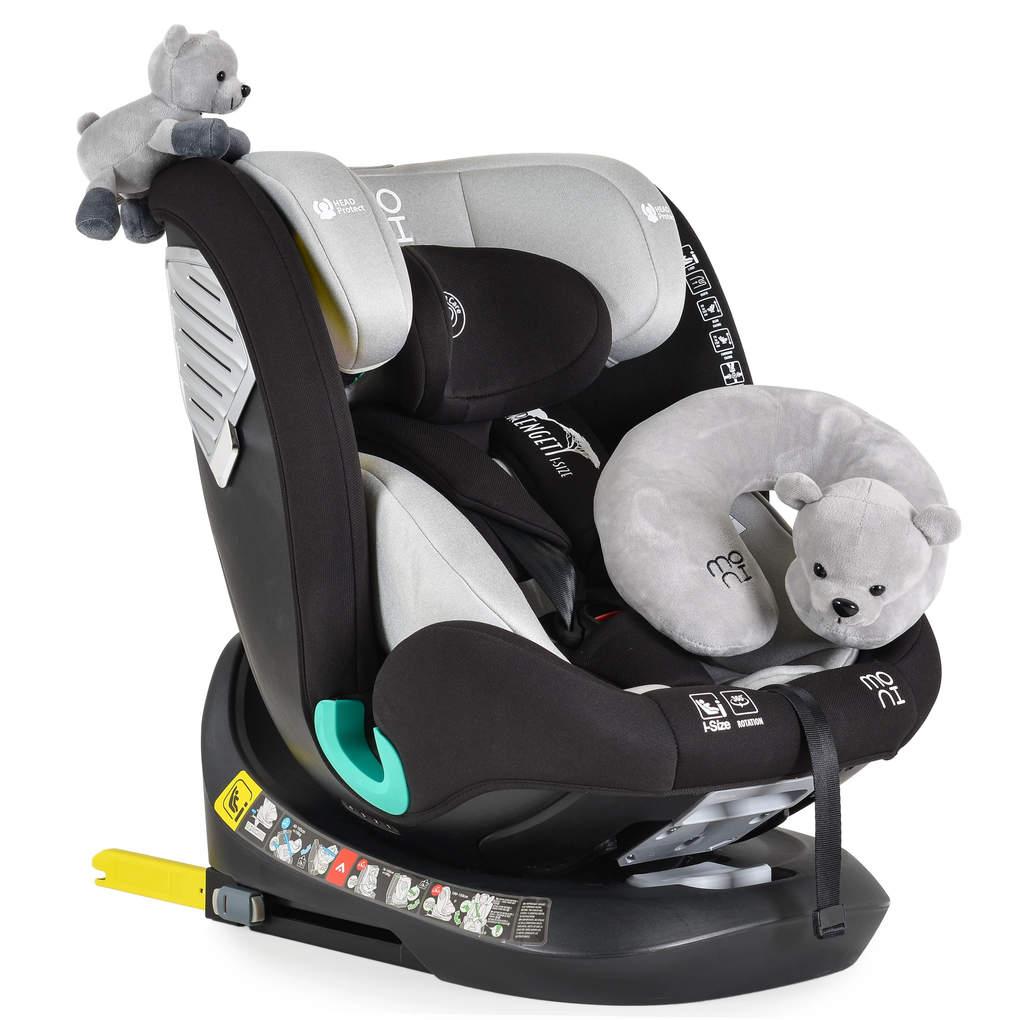 Автокресло 0-36кг Isofix Moni Serengeti Light Grey, поворотное 360