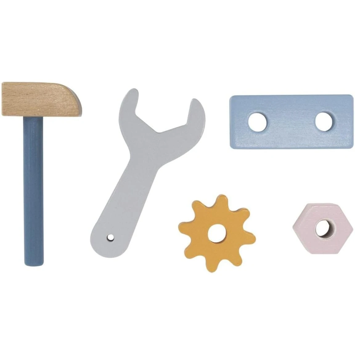 - Набор инструментов включает молоток, гаечный ключ, отвертку, 4 пары болтов и гаек, штифт, 2 шестерни и панели с 2 отверстиями. Отлично подходит для ролевой игры.
