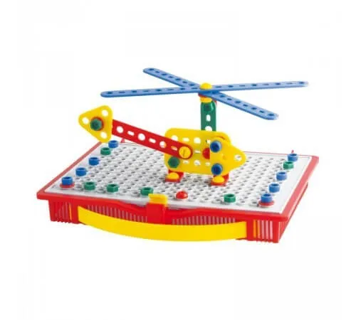 Игра в строительство, предназначенная для ознакомления детей с механикой и развития их координации и моторных навыков. Все детали изготовлены из прочного пластика и могут быть собраны с помощью винтов и болтов, используя прилагаемые инструменты.
