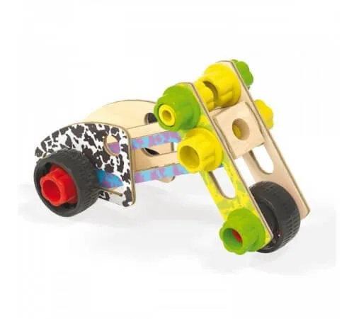 Оригинальная деревянная и пластиковая конструкторская игрушка, полностью украшенная яркими цветами, которая стимулирует навыки ручного и творческого мышления детей и знакомит их с основными принципами механики, играя свободно. Все игрушки из линейки Gioca Wood полностью на 100% произведены в Италии с соблюдением высочайших стандартов качества, при этом особое внимание уделяется деталям и особое внимание уделяется безопасности и заботе об окружающей среде.