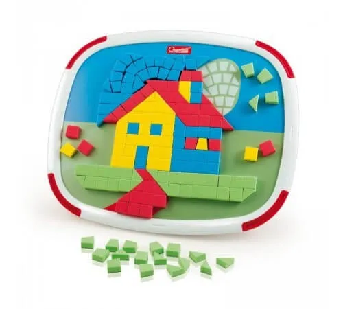 Mosaico - это новая магнитная двусторонняя игрушка с двумя красивыми мозаиками, которую легко собрать, следуя рисункам, напечатанным на магнитной основе. Магнитные плитки, сделанные из мягкой цветной пены, могут быть легко прикреплены и удалены с доски, которая не имеет острых краев.