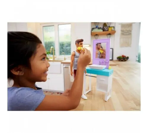 Теперь дети могут создавать новые захватывающие истории вместе с новым тематическим набором "Комната Кена" Barbie. Кен уже готов к стирке или бритья. Каждый набор включает куклу, мебель из ванной комнаты и мелкие аксессуары. Во время бритья Кена, борода может исчезать и появляться с помощью специальной системы изменения цвета, которая активируется используя воду, и помогает создать еще более увлекательную и реалистичную игру. А с другим набором, стирка превращается из скучной домашней работы у веселую игру, ведь машинку можно открывать и закрывать, а барабан внутри крутится!