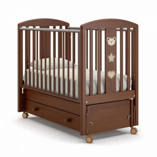 Детская кроватка качалка с ящиком (на колесах) Gandylyan Дени Люкс орех- очаровательная кровать - воплощение продуманного дизайна, комфорта и хорошей функциональности.