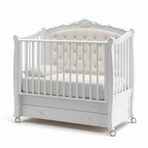 Детская кроватка качалка с ящиком (на колесах) Gandylyan Жанетт белая- очаровательная кровать - воплощение продуманного дизайна, комфорта и хорошей функциональности.