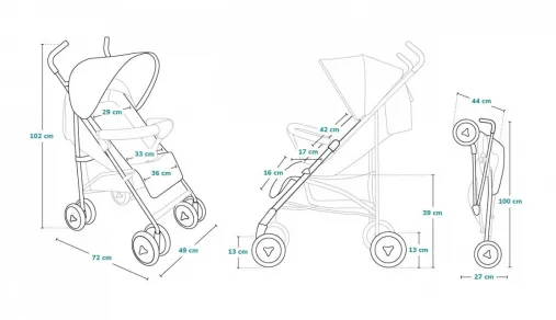 - Размеры в сложенном виде: 27 × 44 × 106 см