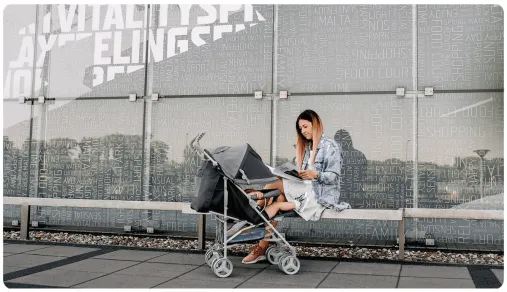 Коляска легко складывается до компактных размеров и занимает минимум места — её можно взять с собой в багажник автомобиля, на борт самолёта или просто хранить в углу дома. Весит всего 6 кг и оснащена эргономичной ручкой, благодаря которой её удобно переносить одной рукой.