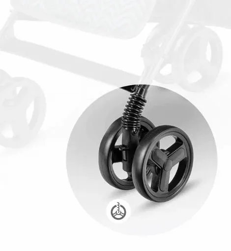 Увеличенный капюшон XXL надёжно защищает от солнца и ветра, а встроенное окошко обеспечивает циркуляцию воздуха и позволяет следить за ребёнком. Бескамерные колёса из EVA-пены не боятся проколов и не требуют обслуживания, что делает Elia идеальным спутником как в отпуске, так и на ежедневных прогулках. Передние колёса оснащены амортизаторами и блокировкой направления, обеспечивая плавный ход даже по неровной поверхности.